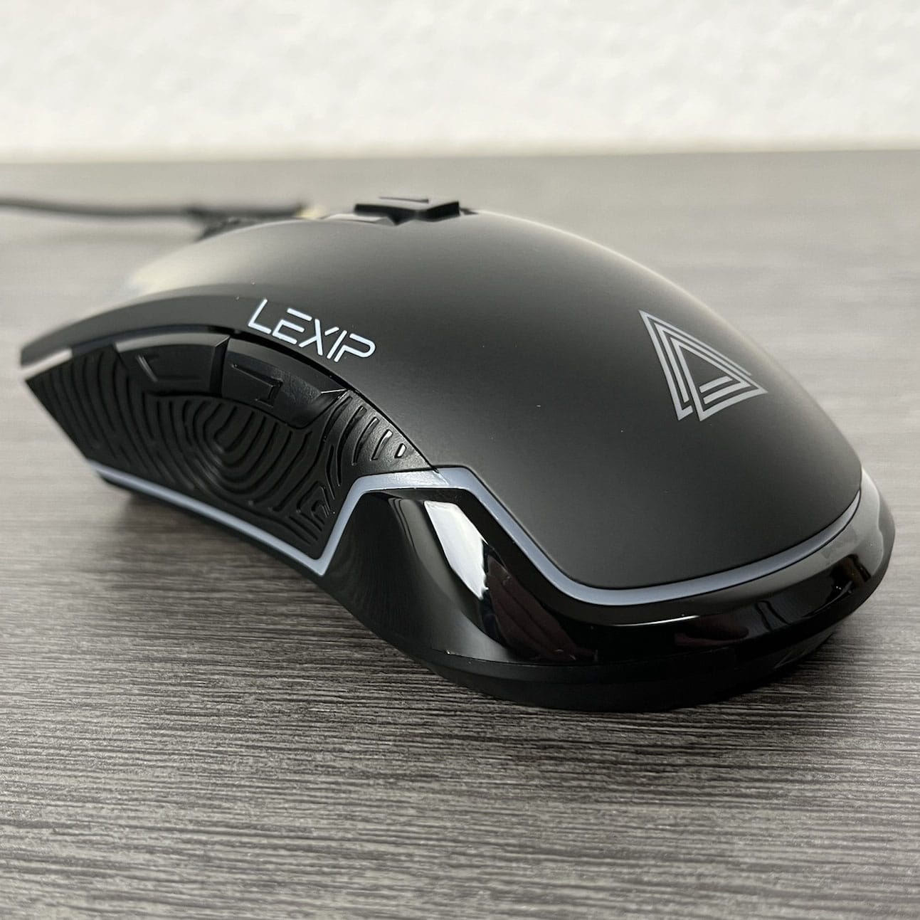 Auch was die Ergonomie angeht, bietet Lexip hier ein durchdachtes Design. Auch nach mehreren Runden liegt die Maus gut in der Hand und sorgt für präzise Steuerungen. Wir können alle Tasten gut erreichen, lediglich die DPI-Taste könnte ein kleines Stück weiter vorne am Mausrad liegen.
