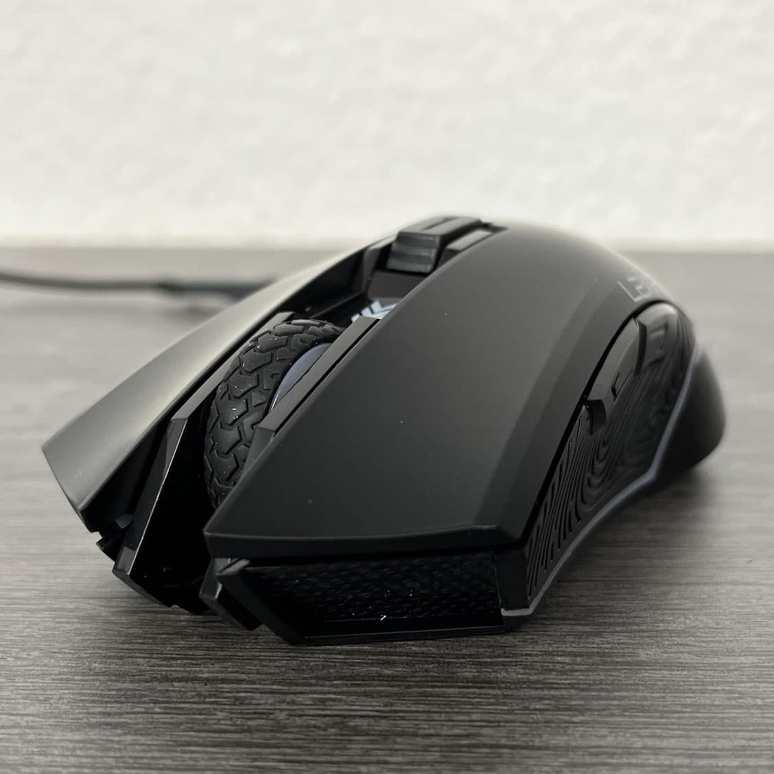 Fassen wir nochmal alles zusammen. Die Maus ist mit ihrem kantigen Design recht aggressiv und bietet von der Ausstattung der Tasten alles, was man braucht. Auch die Möglichkeit die Maus mit oder ohne Kabel zu benutzen ist ein fetter Pluspunkt, gerade in Hinblick auf den Preis von gerade einmal 40 €.