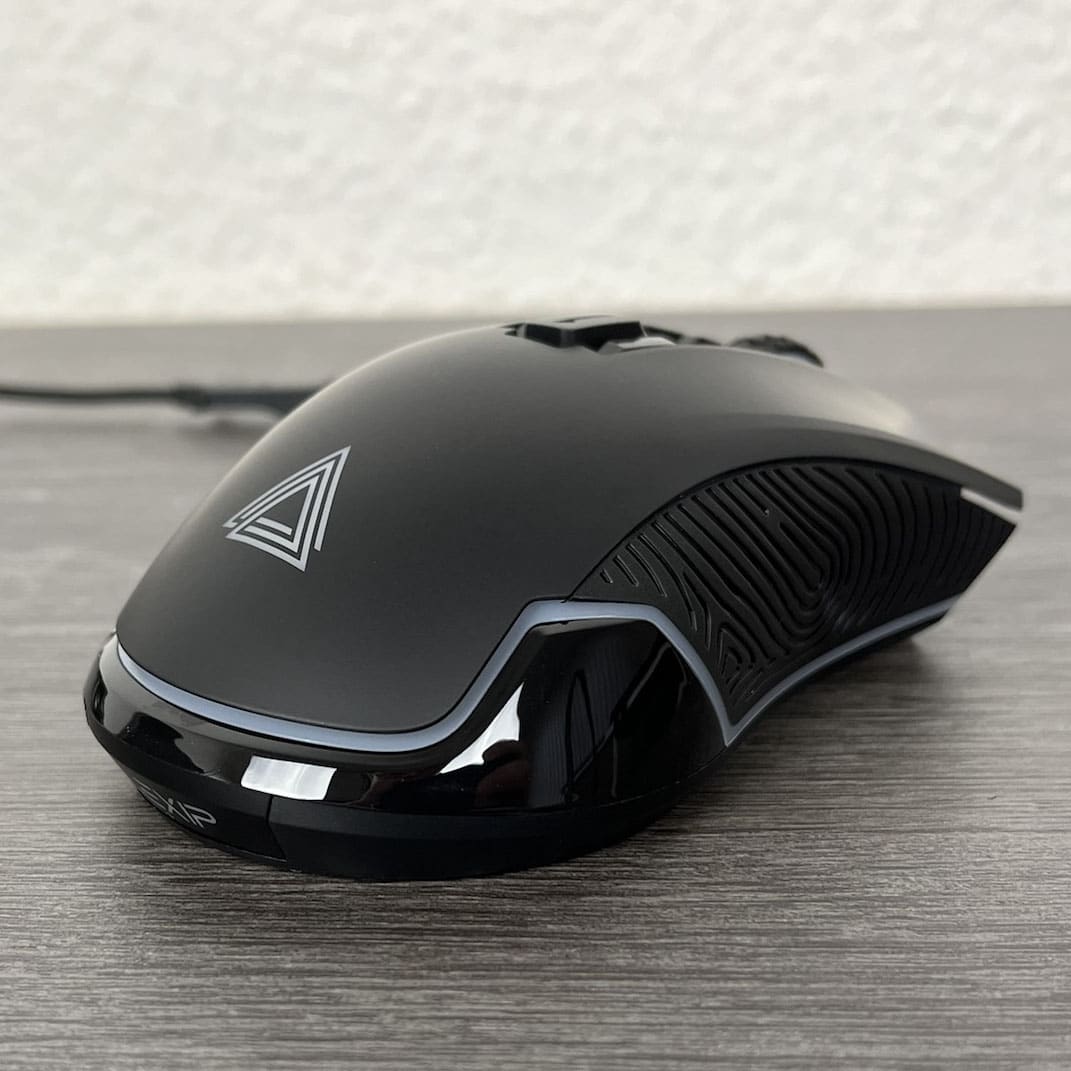 Auf den zweiten Blick wurde aber durchaus mehr Zeit in das Design gesteckt. So wurde zum Beispiel für die RGB-Beleuchtung nicht nur eine Aussparung an der unteren Seite der Maus freigelassen, sondern bewusst der Fokus auf ein kantiges Design gesetzt. Im hinteren Teil der Maus verläuft die Beleuchtung in einer Art Zickzack und zieht sich an den Seiten dann wieder gerade. Auch sonst hat man durchaus versucht viele Kanten und Ecken zu generieren, dadurch wirkt die Maus sehr verspielt, aber dennoch aggressiv.