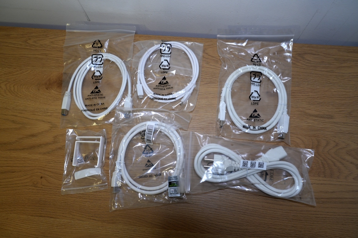 Neben dem Monitor selbst und dem Standfuß samt Ständer legt LG dem 38WR85QC-W eine ganze Reihe an Kabeln bei. Dank Netzkabel, HDMI-Kabel, DP-Kabel, USB-A-zu-B-Kabel und USB C-zu-C-Kabel bist du direkt für alle Eventualitäten gewappnet, während eine praktische Halterung ein sauberes Kabelmanagement ermöglicht.
