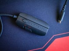 An der Inline-Fernbedienung wird das Headset über USB mit einem PC verbunden. Per Klinkenstecker kann man es auch mit einer Konsole, einem Smartphone oder Tablet verbinden, eine entsprechende Buchse natürlich vorausgesetzt. Hier lässt sich auch die Lautstärke der Ohrhörer regeln, sowie das Mikrofon stumm schalten. Mit einem Knopfdruck kann man auch die RGB-Beleuchtung ausschalten. Diese, wie auch die 7.1-Surround-Sound-Funktion, ist leider nicht mehr nutzbar, wenn man das Headset nur über den Klinkenstecker anschließt.