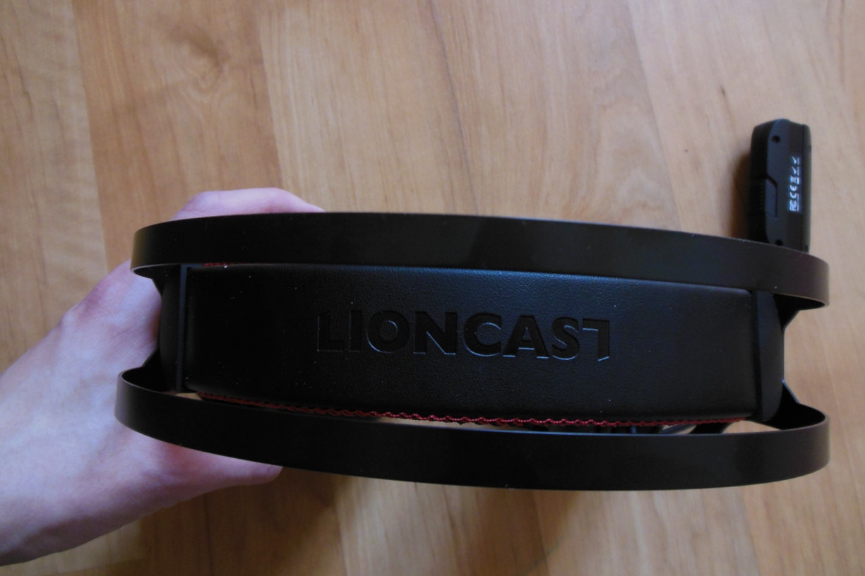 Das Kopfband selbst wurde an der Oberseite mit einer wenige Millimeter dicken, kunstlederummantelten Polsterung versehen. Rot bestickte Ränder und ein prominenter „Lioncast“-Schriftzug, der sich an der Oberseite des Bandes zeigt, erhöhen die Auffälligkeit.