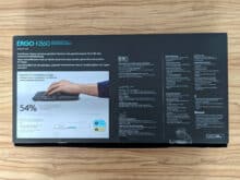 Die Logitech Ergo K860 kommt in einem flachen Pappkarton, welcher durch die Handgelenkauflage etwas größer, als bei vielen anderen Modellen, ist. Das Verpackungsdesign orientiert sich an den anderen Logitech Geräten. Sie ist größtenteils schwarz, einzig die türkise Schrift bildet einen Kontrast dazu. Während auf der Vorderseite die Tastatur abgebildet ist, finden wir auf der Rückseite Informationen zu den ergonomischen Anpassungen und die technischen Details. Im Inneren des Kartons befinden sich die Tastatur, der Unifying USB-Empfänger, zwei AAA-Batterien und eine Anleitung.