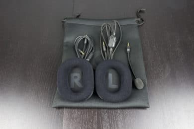 Beim Pro X ist alles dabei was man sich wünschen kann. Zwei Klinkenkabel in unterschiedlichen Längen für PC, Notebook, Konsole und mobile Endgeräte liegen mit im Karton, inklusive Bedienteil selbstverständlich. Um den Sound der Kopfhörer und des Mikrofons individuell anzupassen, ist auch eine USB-Soundkarte mit dabei. Auch das abnehmbare Mikrofon liegt mit im Karton. Für aufgezogenen Kunstleder-Ohrpolster lassen sich austauschen, dafür liegt ein Ersatzpaar mit weichem Stoffbezug dabei. Für den Transport gibt es noch einen kleinen Aufbewahrungsbeutel.