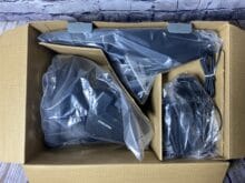 Schauen wir mal ins Innere. Auf den ersten Blick wurde alles ordentlich und ausreichend verpackt mit einzelnen Folien sowie Karton-Trennwänden. Die Elemente können sich somit nicht beim Transport gegenseitig beschädigen. Dabei wurde das Innere des Kartons dreigeteilt – Lenkrad, Pedale und Netzteil. Als Beilagen gibt es eine Bedienungsanleitung, einen Sticker und Werbung dazu. Diejenigen, die Interesse an einen separaten Schalthebel haben, können diesen auch noch mal einzeln nachkaufen da er bei diesem Paket nicht enthalten ist.
