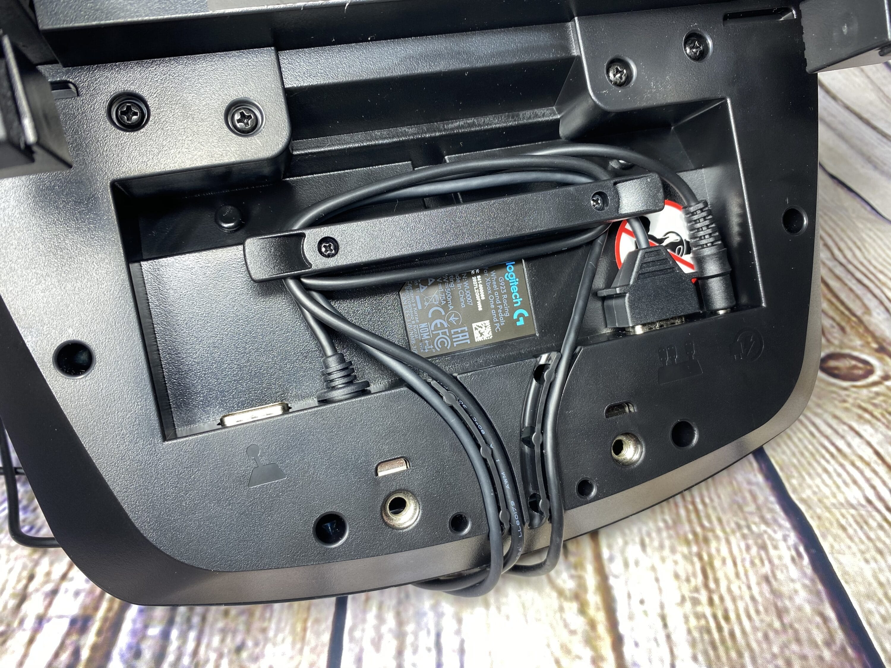 Schön sind auch die sich unter dem Lenkrad befindenden Kabelführungen. Beim Verkabeln kann man hier also alle Kabel gut und einfach verstauen und durch die vorgesehenen Schienen nach außen führen. Leider rutschten bei uns beim Montieren manchmal die Kabel aus der Schiene, nicht unbedingt tragisch, führt aber zu ein bisschen Fummelarbeit.