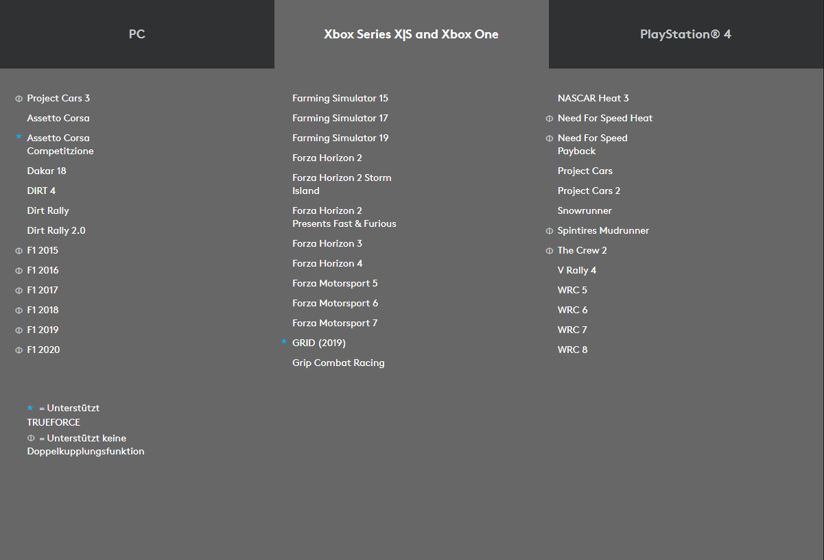 | Anforderungen Xbox | Xbox Series X|S oder Xbox One Gaming System, ein Spiel das Force-Feedback Lenkräder von Logitech unterstützt |