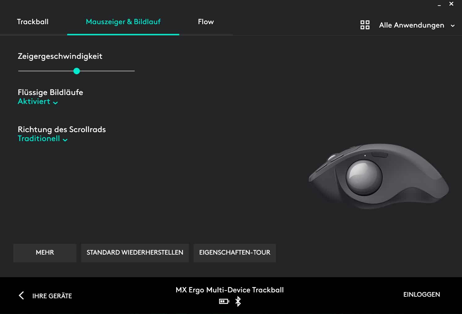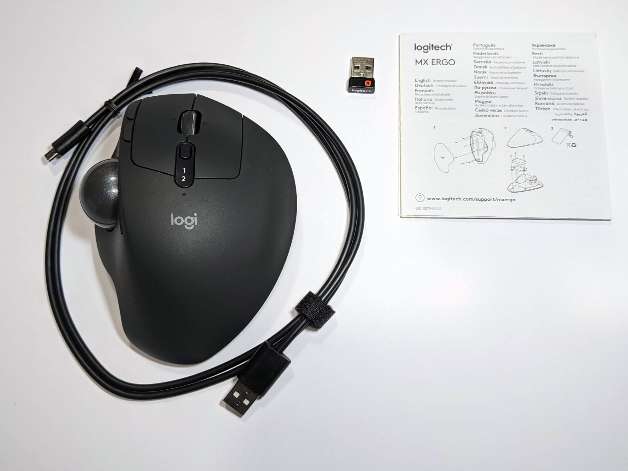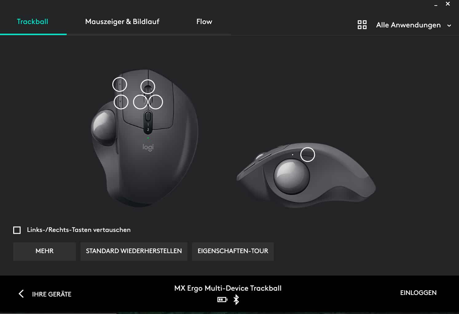 | Lieferumfang | MX Ergo Advanced Kabelloser Trackball USB-Empfänger Micro-USB-Ladekabel Schnellstartanleitung |