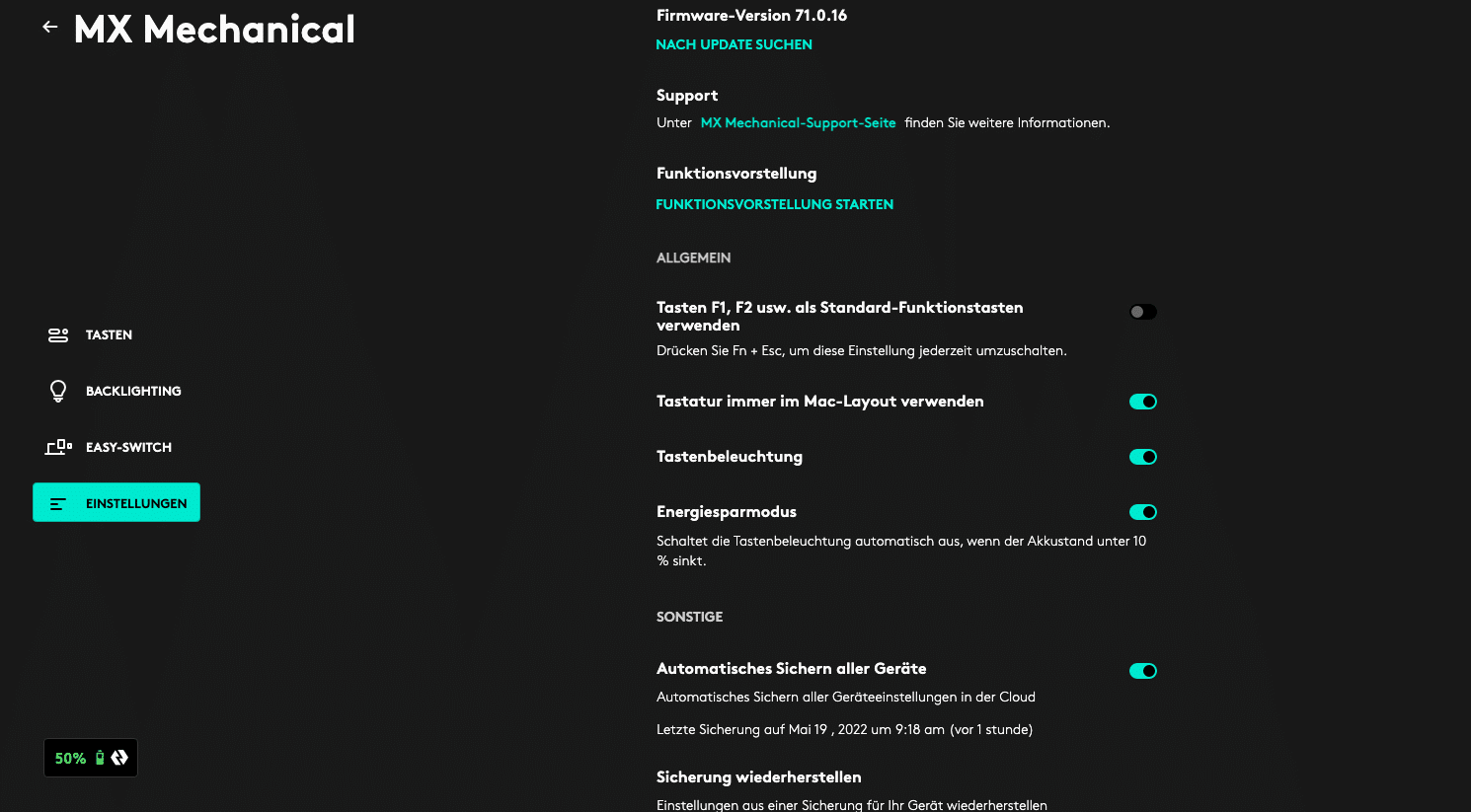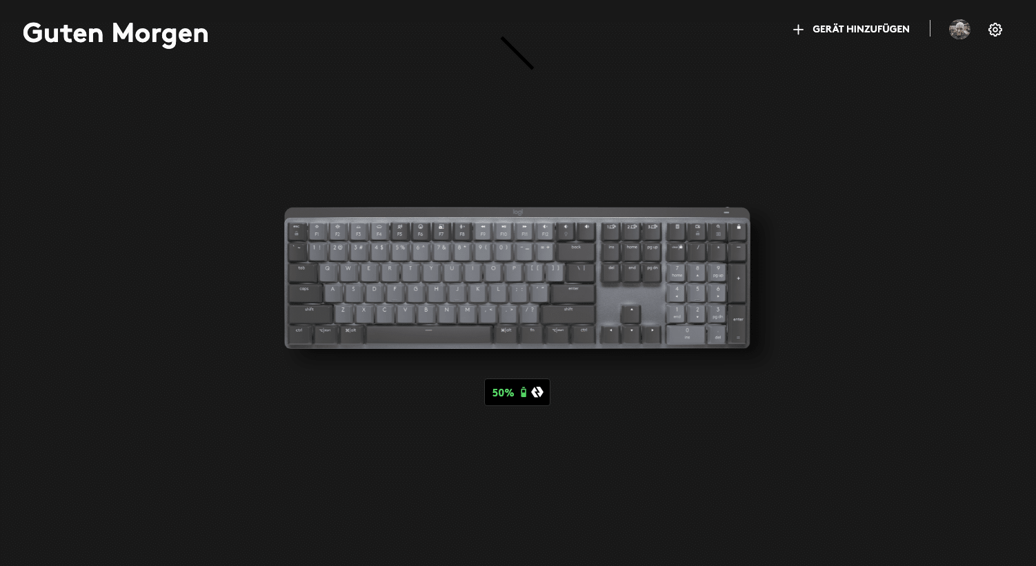 Die Logitech MX Mechanical verfügt über einen fest eingebauten Akku, der sich scheinbar auch nicht austauschen lässt. Das wirkt gerade im Hinblick auf den ansonsten vorherrschenden Fokus auf Nachhaltigkeit etwas seltsam. Aber nun gut.