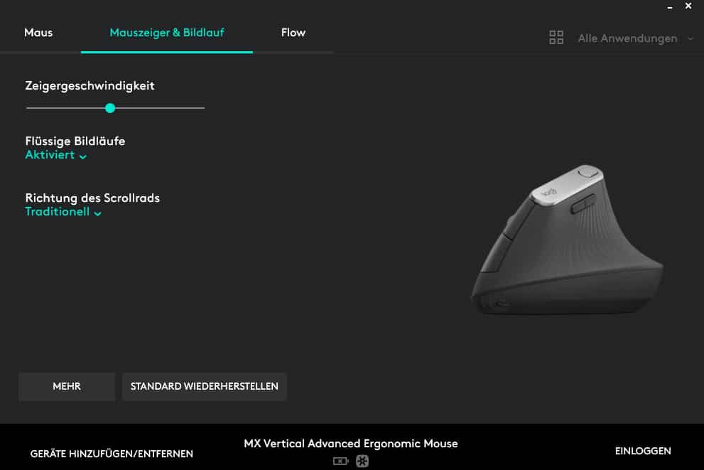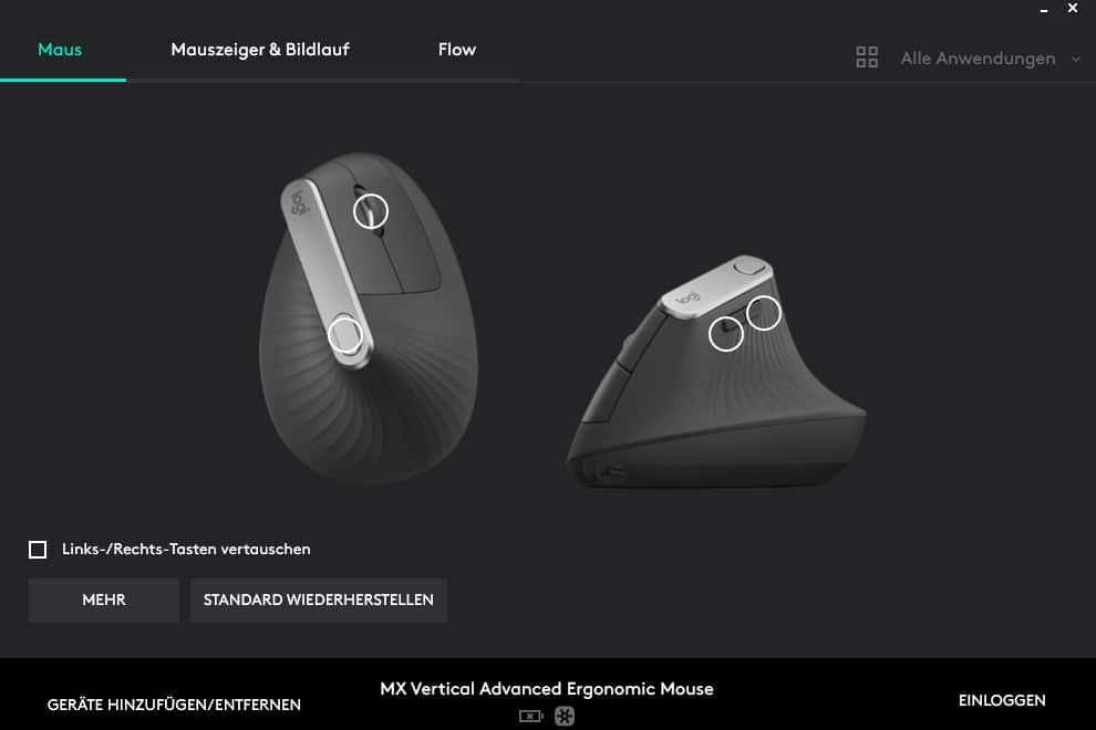 Mit Logi Options+ wurde im Mai 2021 der Nachfolger der mittlerweile betagten Logitech Options Software vorgestellt. Nach mehreren Monaten im Beta-Stadium hat die Software diesen nun verlassen und ist final, aktuell in Version 1.0.5155, verfügbar. Trotz dessen wird die MX Vertical aktuell nicht unterstützt, so dass weiter das ältere Logitech Options zur Konfiguration verwendet werden muss.