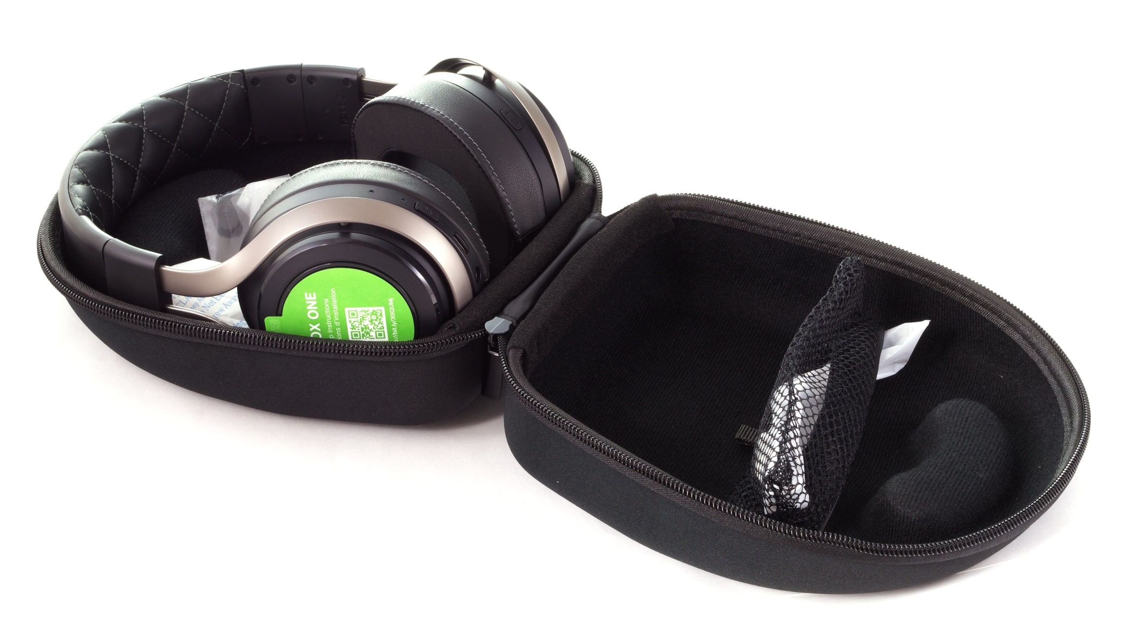 Die Lautsprecher werden, wie üblich, von einer Stoffschicht überdeckt und von Schaumstoffpolstern umringt. Diese können mit einem Handgriff abgezogen und damit ausgetauscht werden. Seitlich besteht der Bezug des Polsters aus Kunstleder, auf der Haut selbst liegt hingegen ein Stoffgewebe auf.