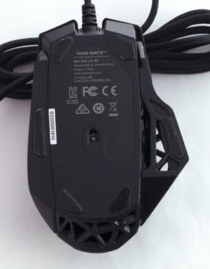Abseits des geringen Gewichts bietet Mad Catz bei der M.O.J.O. M1 ein recht übliches Paket: Im Inneren arbeitet der frühere High-End-Sensor Pixart PWM 3360, der mit seiner maximalen Auflösung von 12.000 DPI auch heute noch die meisten Ansprüche abdecken dürfte. Dazu gibt es eine RGB-Beleuchtung und die typischen zwei Zusatztasten, während unter den Haupttasten Mad Catz‘ eigene Dakota-Switches zum Einsatz kommen.