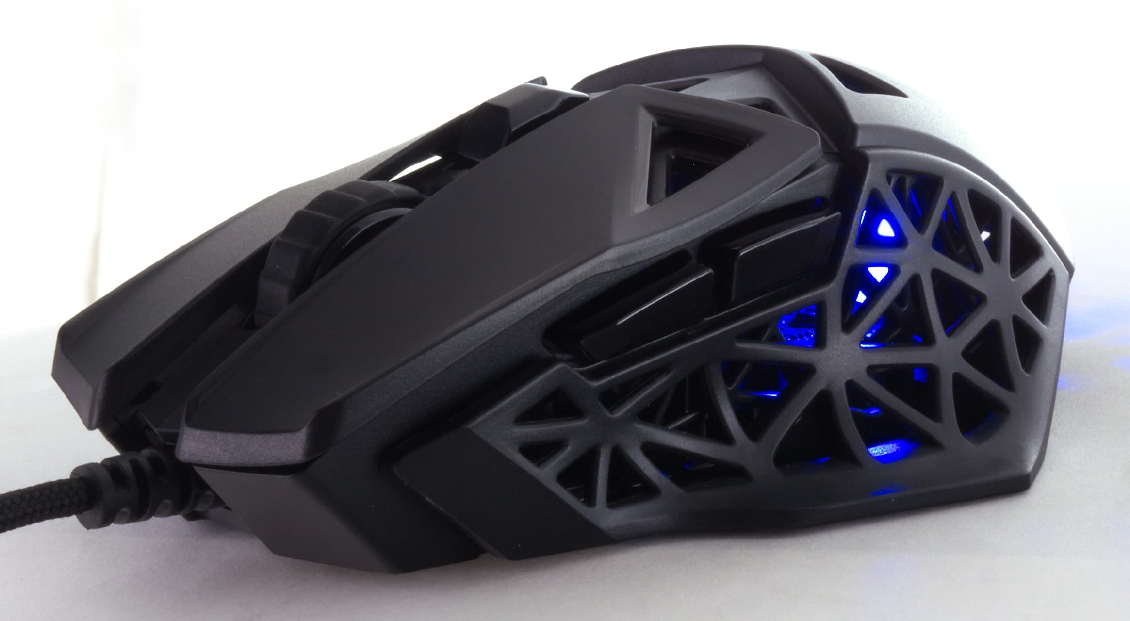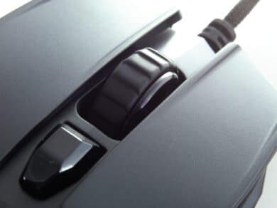 Optisch und haptisch ist das Gehäuse der Maus dabei einwandfrei. Die einzelnen Gehäuseteile sind fest und stabil verbunden, das Gerät ist verwindungssteif und knarzt auch bei Belastung nicht. Haptisch hat uns die Maus ebenso gefallen: Die verwendeten Materialien liegen angenehm in der Hand. Ob einem die glatte Oberfläche der Zusatztasten zusagt, dürfte dabei wohl Geschmackssache sein – uns hat sie nicht gestört.