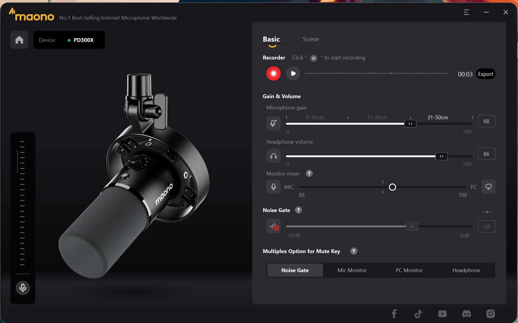 Schließt ihr das Mikrofon per USB an, stehen euch innerhalb der Maono Link Begleit-App zudem viele weitere Möglichkeiten offen. So habt ihr hier nicht nur die Möglichkeit, Gain und weitere Einstellungen zu regulieren oder den Klang probezuhören, sondern könnt auch zwischen verschiedenen Klangeinstellungen wählen.
