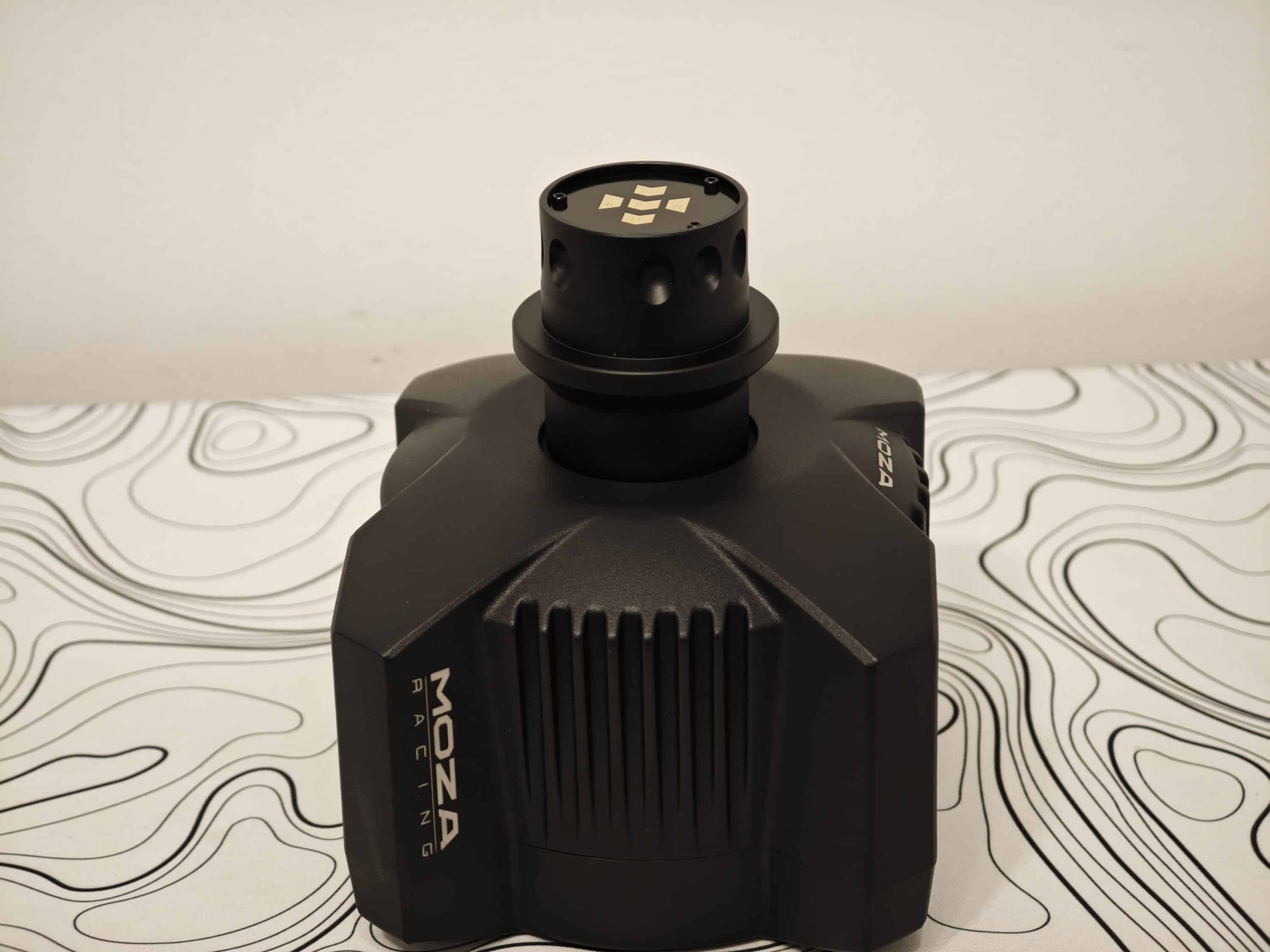 Nachdem das MOZA R3 Bundle sehr schnell aufgebaut ist, kann es auch schon auf die Rennstrecken gehen. Die Wheel Base ist vergleichsweise winzig. Bereits die des R5 war sehr klein, die das R3 ist aber noch einmal kompakter, greift aber das X-Design des R5-Gegenstücks auf.