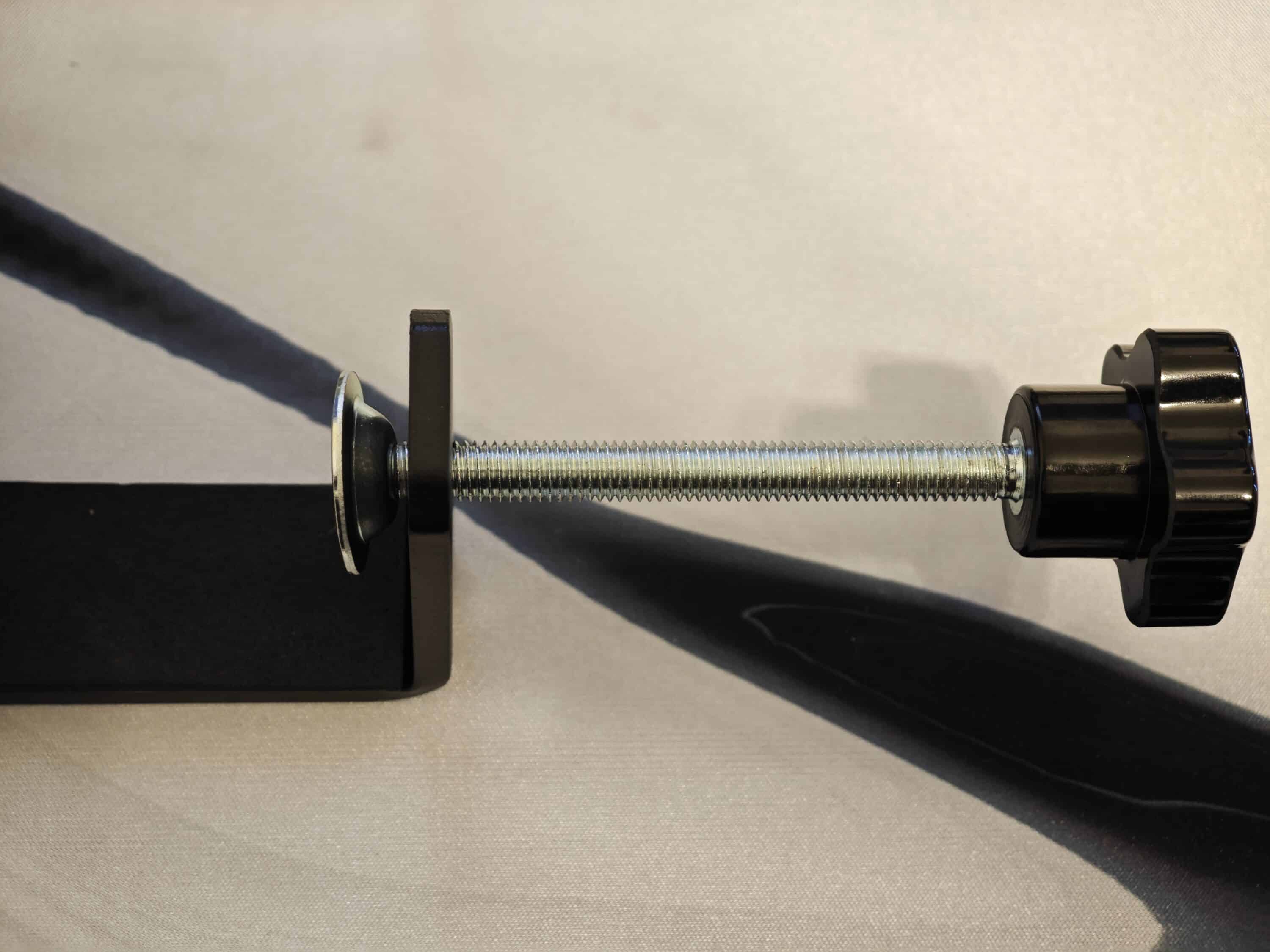 Der Aufbau gestaltet sich als relativ einfach. Zunächst will die Tischhalterung verschraubt werden. Dafür montiert ihr zunächst die langen Schrauben und bringt dann die Base an der Halterung an. Schon kann der Verbund am Tisch montiert werden.