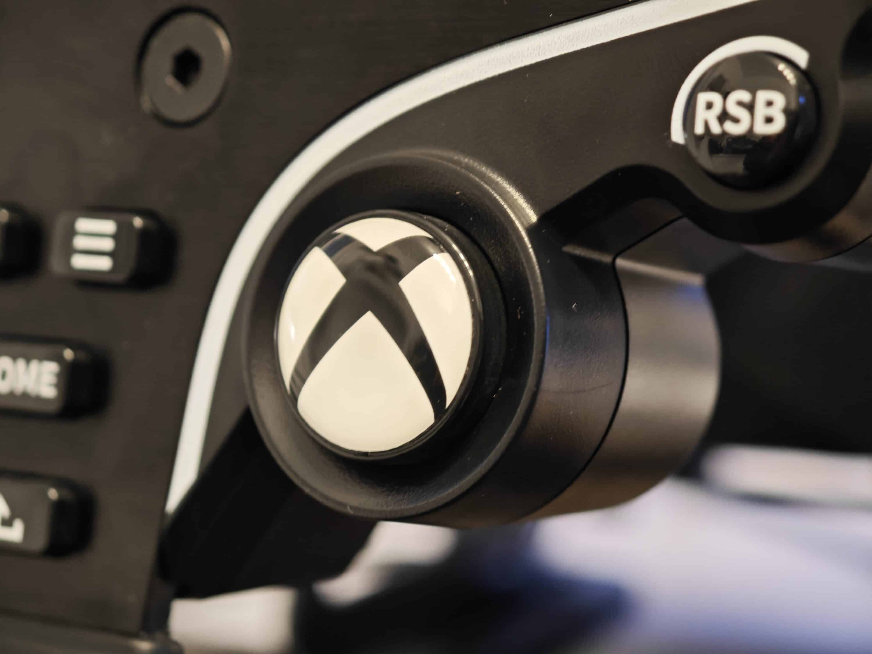 Das Lenkrad kennen wir hinsichtlich der Form bereits aus dem R5 Bundle. Nur dass die Variation hier auf die Button-Bezeichnung der Xbox setzt. Aus Start wird der Xbox-Button, aus CAM und R hingegen LSB und RSB und so weiter.