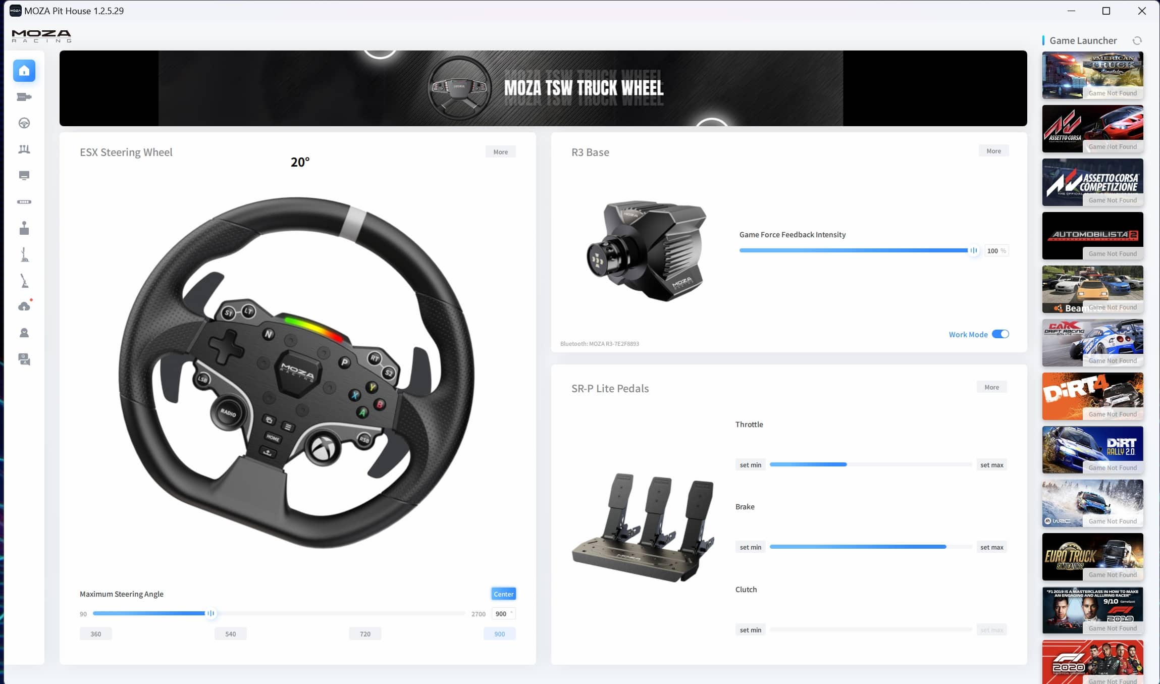 Als sehr praktisch erweist sich die MOZA Pit House-Software des MOZA R3 Bundle, wenn auch nur am PC. Diese erlaubt eine detaillierte Anpassung von Lenkrad, Base und Pedalen. Die Einrichtung der App ist mit einer Mischung aus chinesischen Schriftzeichen und englischer Sprache zwar etwas abenteuerlich, ist aber erstmal alles eingerichtet, punktet die Software mit einem hervorragenden Umfang.