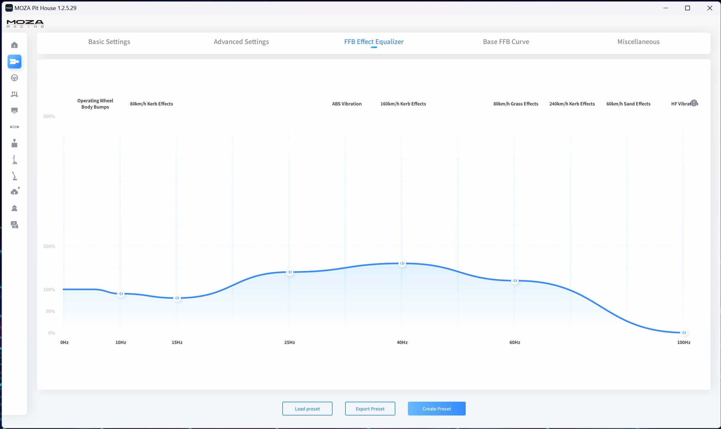 Allerdings kommt es schneller zum FFB-Clipping, also dem Abschneiden der Spitzen beim Force Feedback, dem man mit der Software aber entgegenwirken kann. Eine Verringerung des FFB um 10-20 Prozent schafft hier schnell Abhilfe.