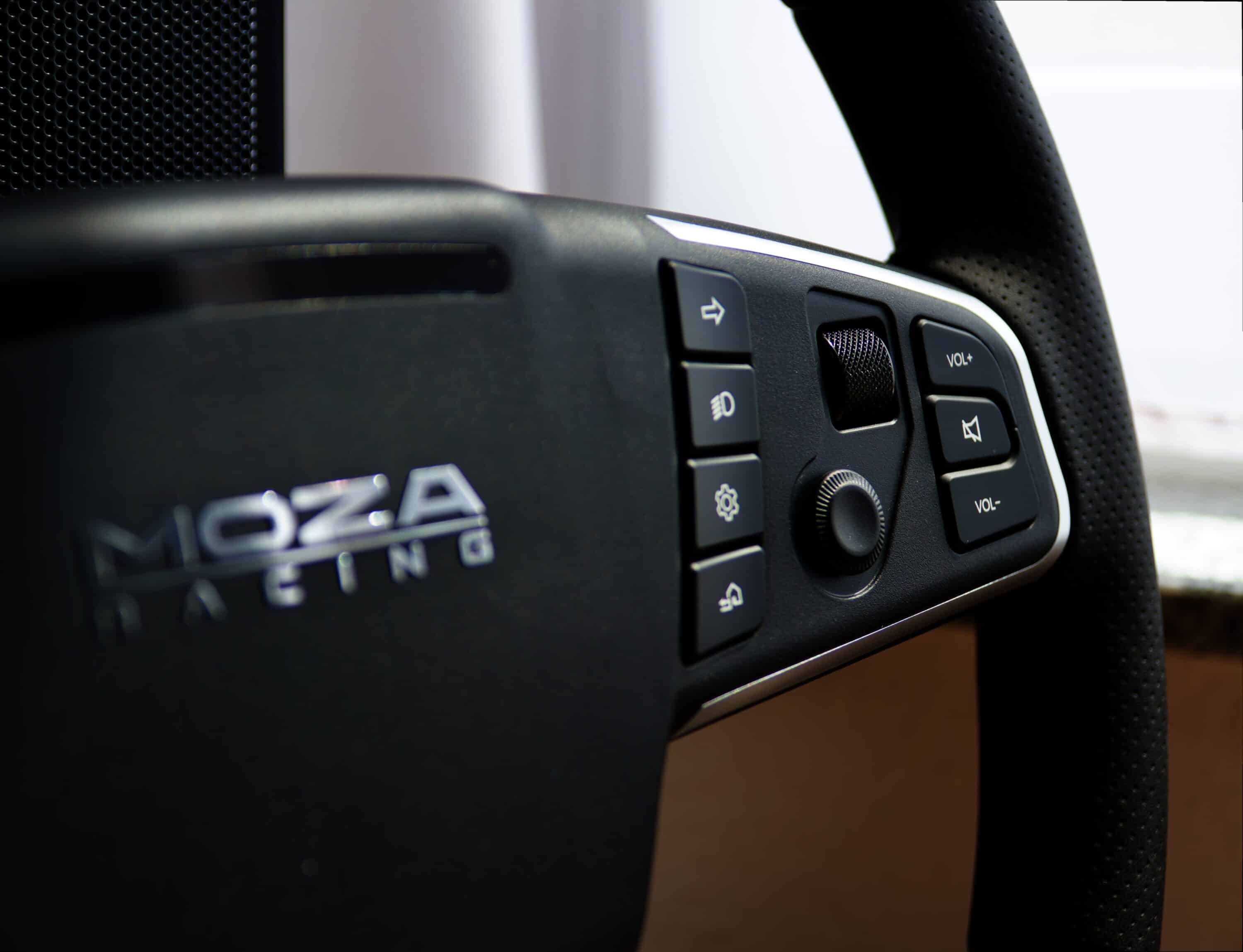 Das TSW LKW-Lenkrad des Moza R5 Trucking Bundles ist speziell für Truck-Simulationen konzipiert und bringt dabei zahlreiche Details mit, die das Lenkrad zum Highlight des Bundles machen.