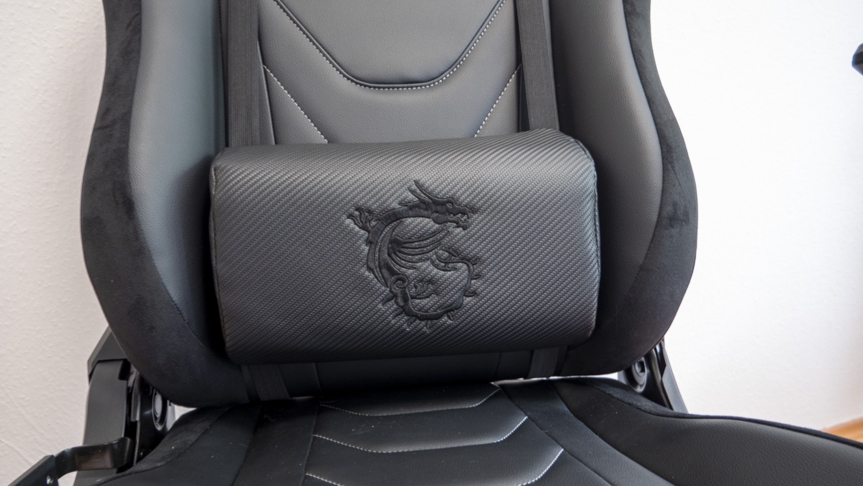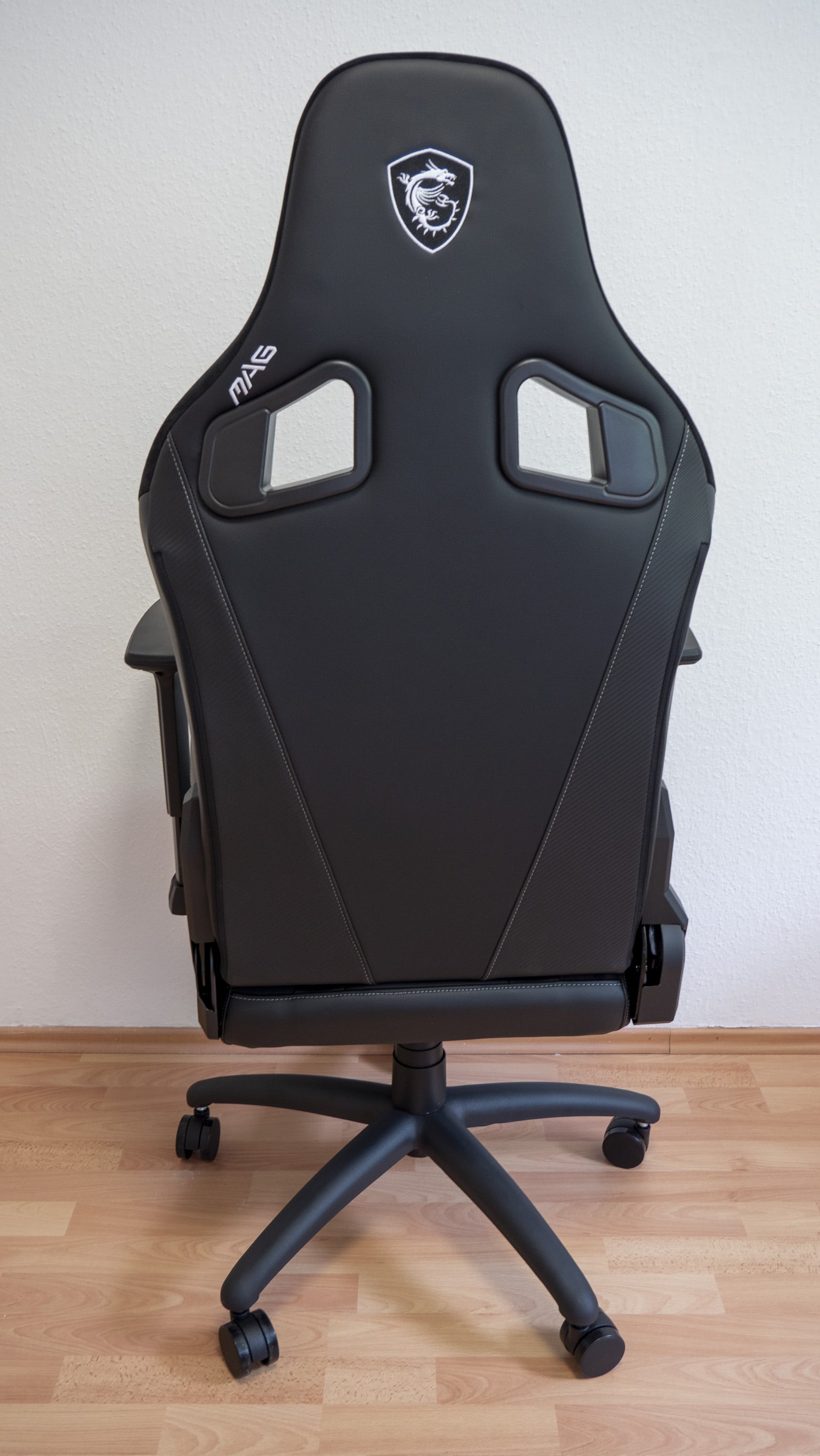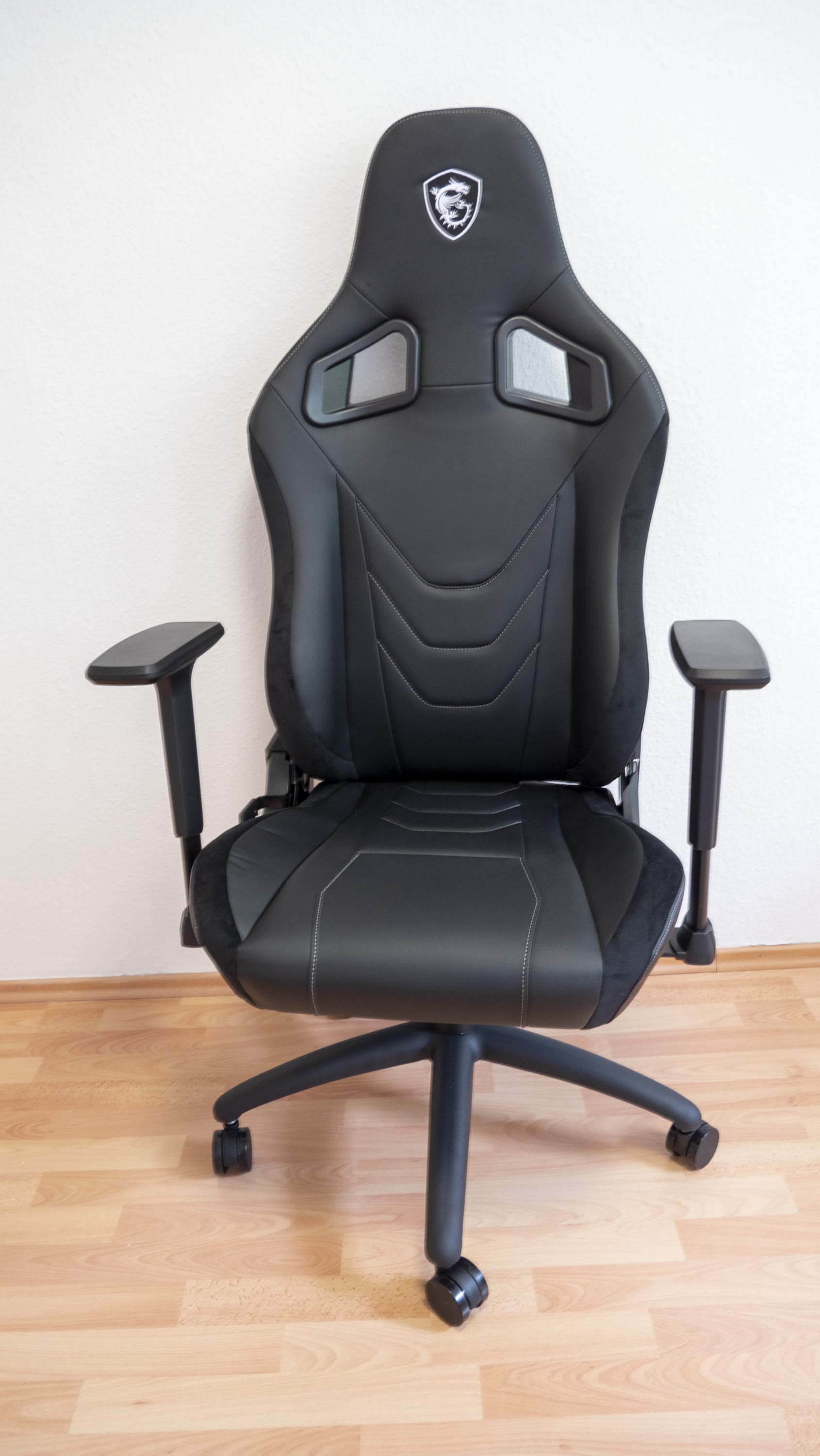 Positiver aufgefallen ist uns hingegen die Stahlverstärkung des Gerüsts, die den Stuhl robust und stabil macht. Hier scheint MSI größeren Wert auf eine hohe Lebensdauer zu legen. Ähnliches lässt sich über die Rollen, auf denen der Stuhl steht, sagen: Es handelt sich allem Anschein nach um recht stabile Modelle. MSI spricht von extrem langlebigen und zuverlässigen Anti-Kratz-Rädern – was auch unserem Eindruck entspricht.
