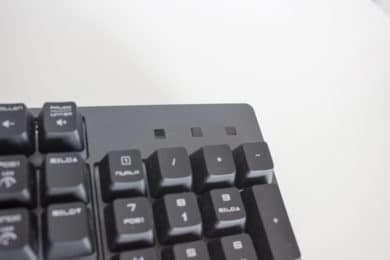 Über dem Numpad ist typischerweise die Anzeige für aktives Numpad oder Capslock angeordnet. Da die VIGOR GK30 aber hohe Tasten hat, wird die Sicht darauf verdeckt, wenn die Tastatur nicht direkt vor einem liegt.