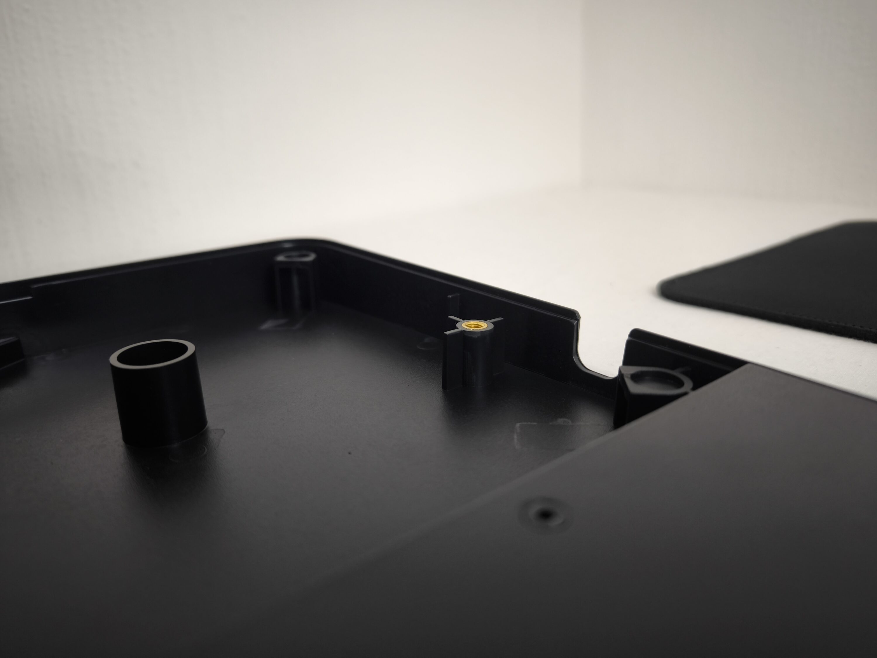 Zu Beginn wird die Auflage einmal umgedreht und die vier großen Schrauben, zwei auf jeder Seite, gelöst. Dadurch öffnen sich die beiden Klappen, in denen man nun seine eigenen kabelgebundenen Geräte ins Gehäuseinnere schleusen kann. Sämtliche Geräte lassen sich über den USB-Hub anschließen, wovon insgesamt 4 im Inneren zur Verfügung stehen. Für diejenigen, die inzwischen auf eine kabellose Tastatur mit Maus setzen, kann dieser Punkt natürlich getrost ignoriert werden.