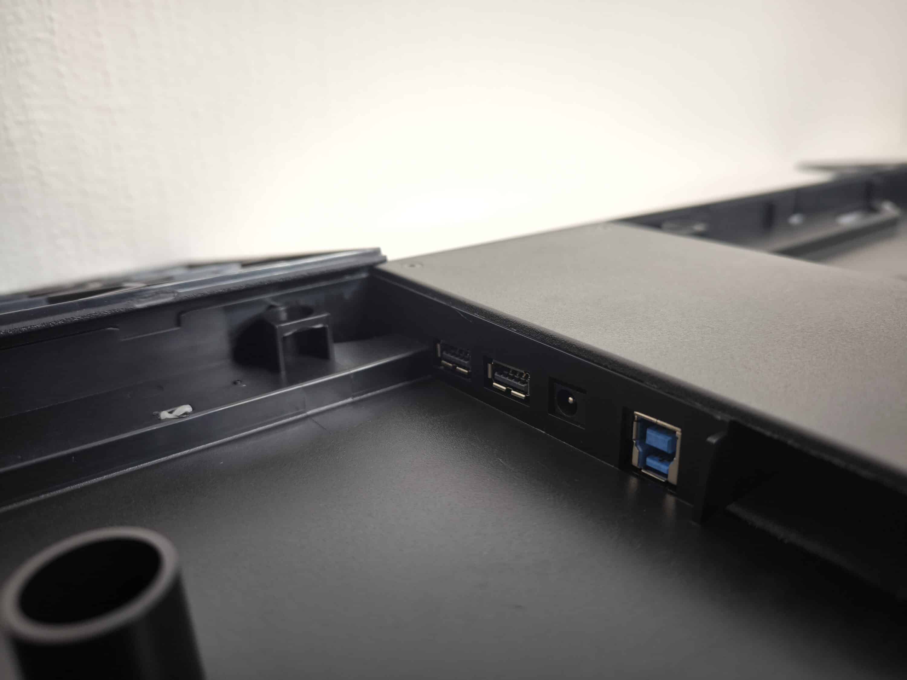 Dank des USB 3.0-Hubs im Inneren erspart man sich viel Fummelei. Einmal angeschlossen, sind alle Geräte direkt nach dem Einstecken am PC einsatzbereit. Übrigens lassen sich die Peripheriegeräte auch ohne Netzteil betreiben, sofern sie nicht mehr als 900 mA benötigen. Dann funktioniert allerdings die Auflagebeleuchtung nicht mehr, weswegen dieser Fall nicht unbedingt zu empfehlen ist.