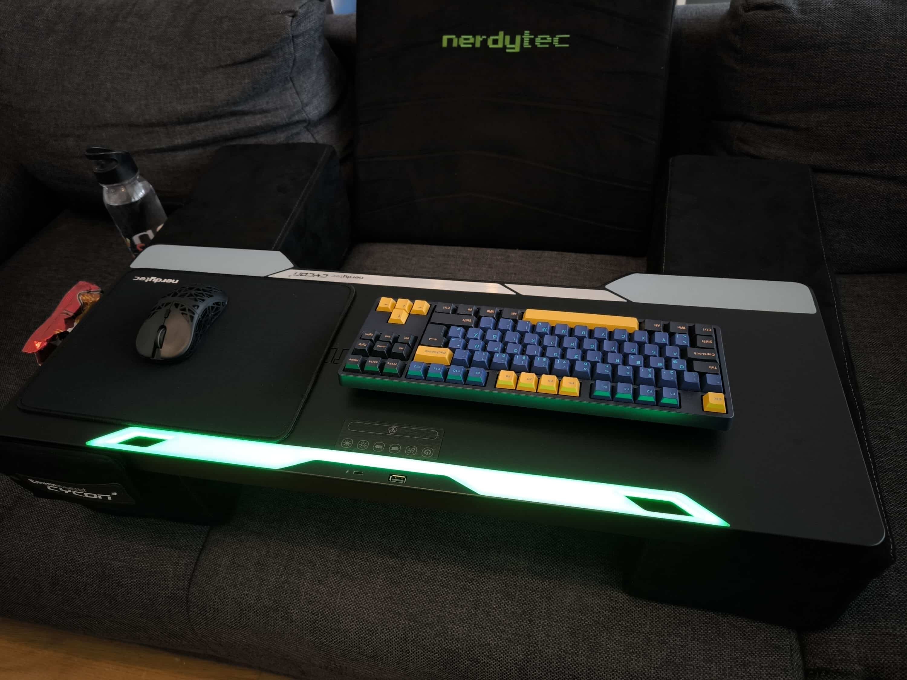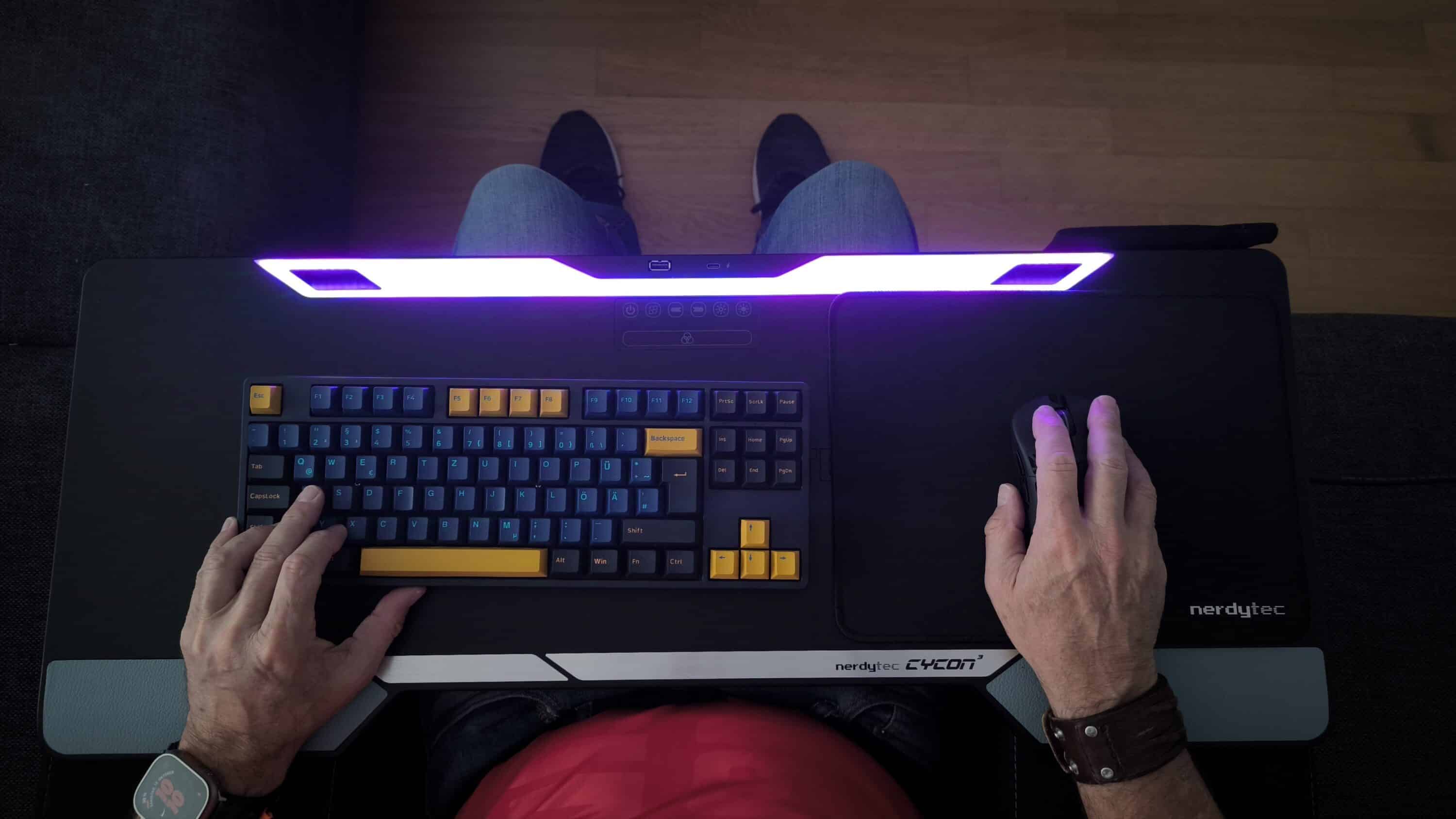 Der Nerdytec Couchmaster CYCONu00b3 bietet sinnvolle Neuerungen gegenu00fcber seinem Vorgu00e4nger und eine stylische Beleuchtung. Wer das Gaming zwischendurch auf die Couch verlegen mu00f6chte, ist hier genau richtig.