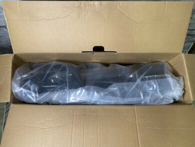 In einem roten Karton verpackt und gesichert mit Folie sowie Schaumstoff wird einem der Racing-Seat geliefert. Hat man alles von der Verpackung befreit, liegt zunächst ein großer Haufen an zusammengefalteten Teilen vor einem.