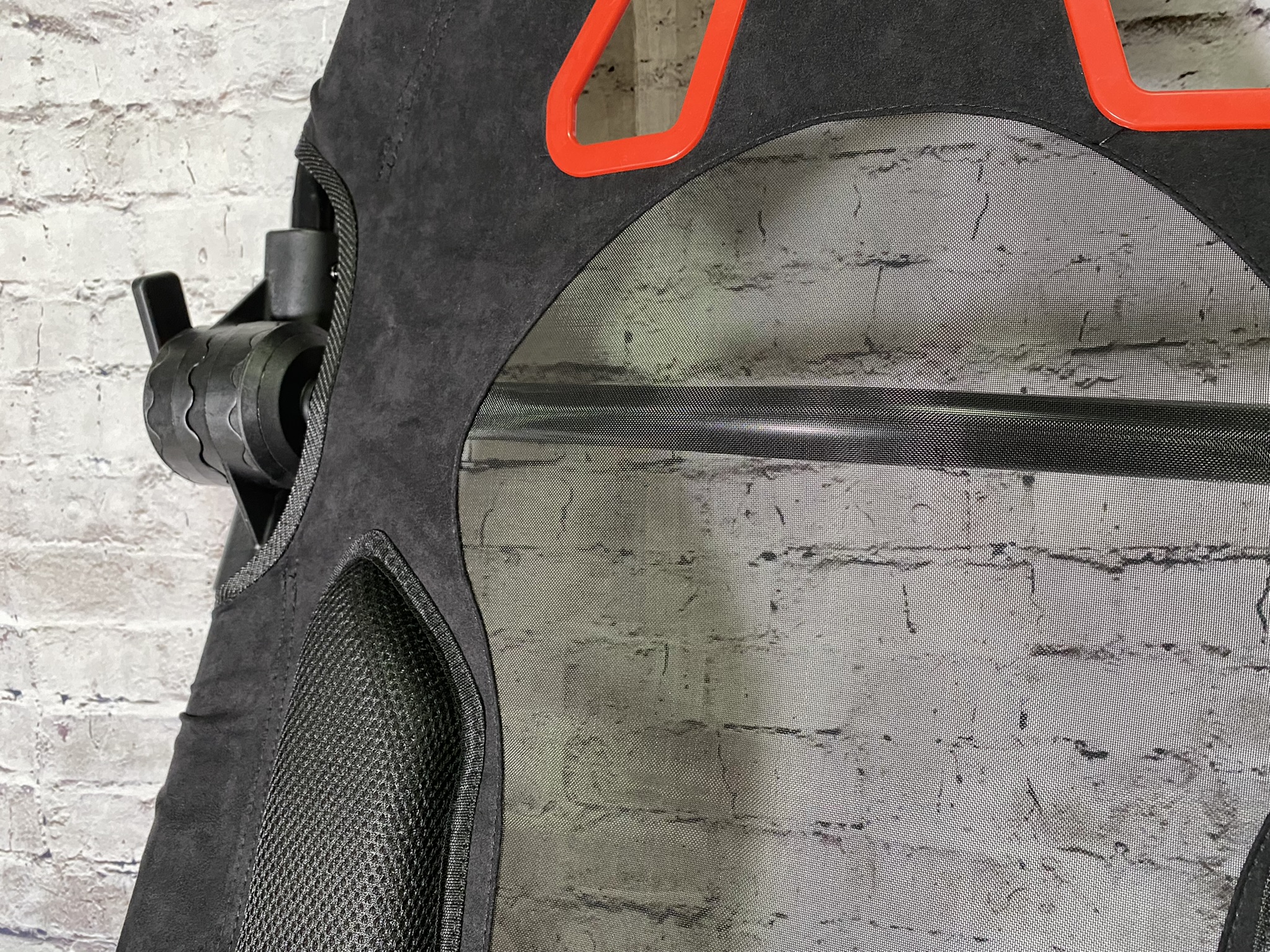 Next Level Racing hat am F-GT LITE nicht an der Qualität der Materialien gespart. Das wohl am schönsten verarbeitete ist die Sitzfläche des Racing-Seats. Es wirkt zwar dünn und etwas instabil, doch das Wildleder und die luftdurchlässige Mitte der Sitzfläche fühlen sich nach einem ersten Sitz-Test hervorragend gemütlich an. Es ist in etwa vergleichbar mit einer stramm gespannten Hängematte zum Sitzen. Einen großen Teil zur Gemütlichkeit tragen auch die an der Sitzfläche angebrachten Polster bei, und in schwitzigen Sessions bleibt der Rücken frei und bekommt Luft.
