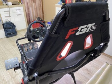 Nach einer ersten 30 minutigen Session am Lenkrad mit dem F-GT LITE, konnten wir nichts negatives feststellen. Die Konstruktion des Racing-Seats ist stabil und macht alles mit. Für uns ist besonders die „in der Luft hängende“ Sitzposition sehr angenehm, da sie sich dem eigenen Körper gut anpasst. Egal ob groß oder klein, es ist für jeden passend. Um die Standhaftigkeit noch ein bisschen zu erhöhen und das Ein- sowie Aussteigen etwas einfacher zu machen, empfehlen wir einen Teppich unter den Füßen der Sitzfläche. Dadurch rutscht der Racing-Seat nicht mehr hin so viel hin und her, auch beim Fahren. Je länger man im F-GT LITE gefahren ist, desto heimischer fühlt man sich. Fast schon so heimisch wie auf einer realen Strecke!