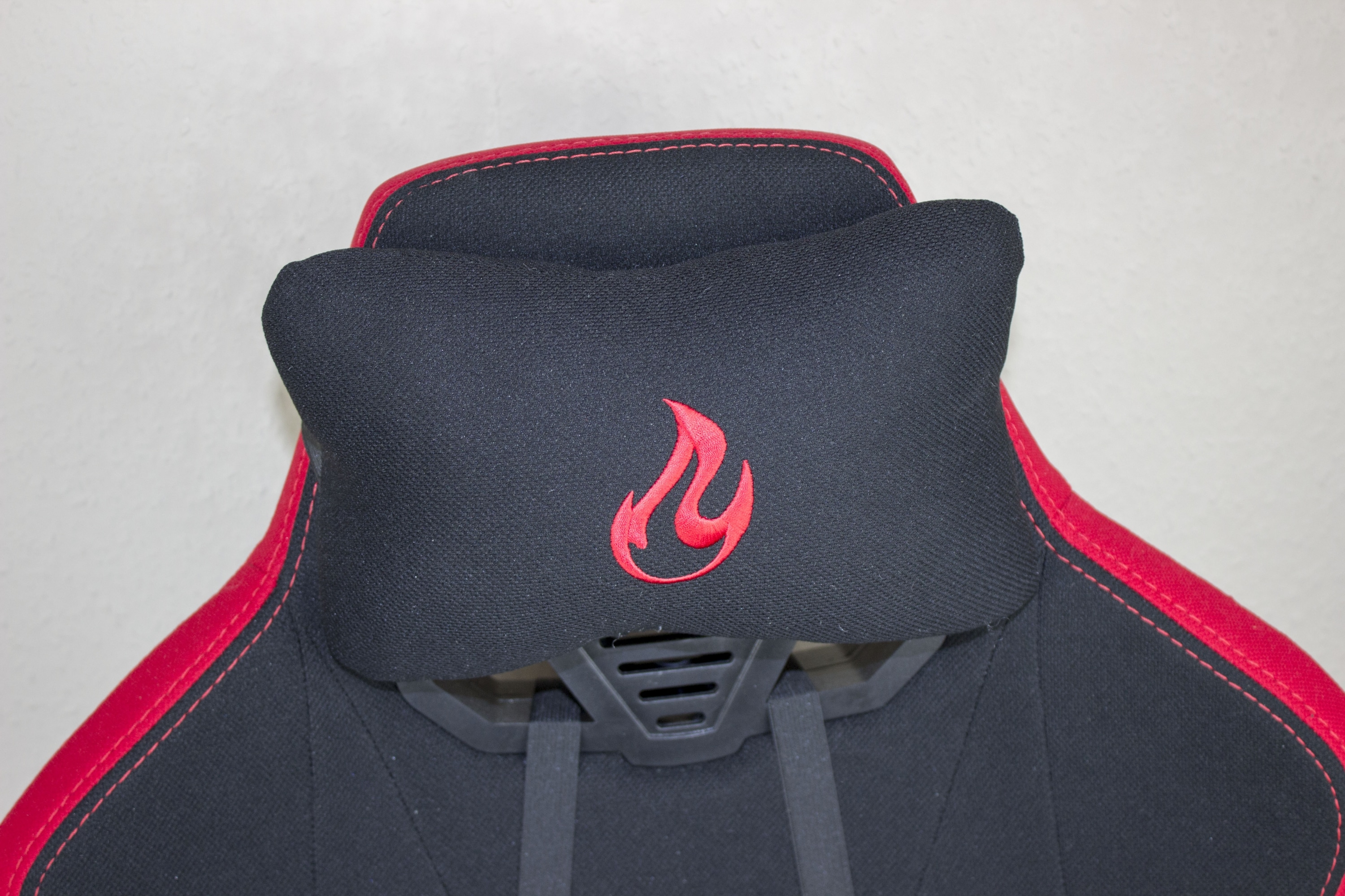 Obwohl die Rückenlehne die bekannten „Flügel“ aufweist, fühlt man sich zu keinem Zeitpunkt eingeengt. Besonders wichtig ist dies auch für korpulentere Gamer. Diese „Flügel“ unterstützen außerdem besonders die Schultern, auch bei großen Menschen. Als Extra für die Rückenlehne gibt es zusätzlich noch ein hochwertiges Nacken- sowie Lendenkissen. Auch bei diesen ist die Qualität deutlich zu merken. Nach dem Zusammendrücken gehen sie schnell in ihre alte Form zurück und verformen sich nicht ständig. Über Gummistriemen werden die Kissen befestigt und können so auch einfach verschoben werden.