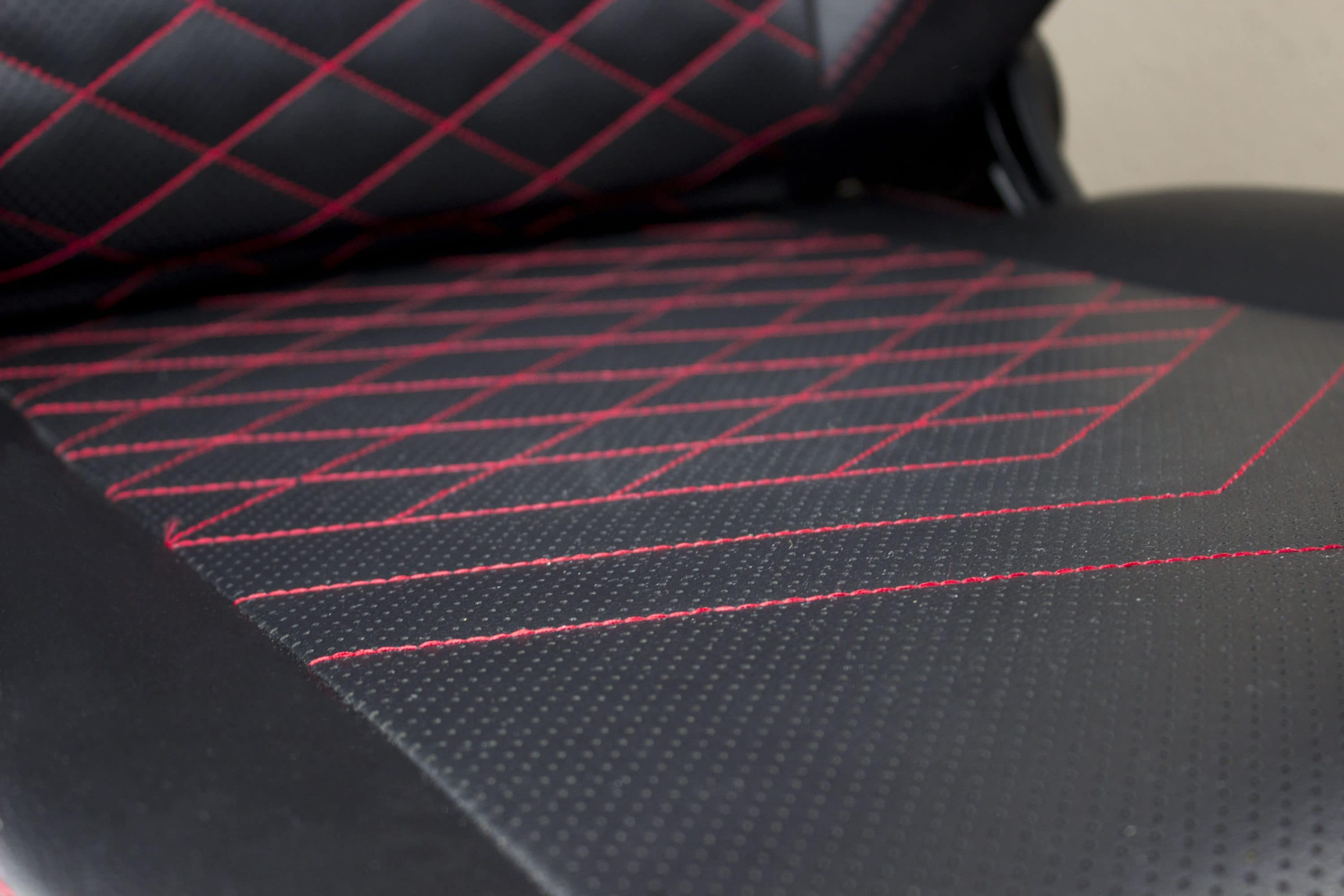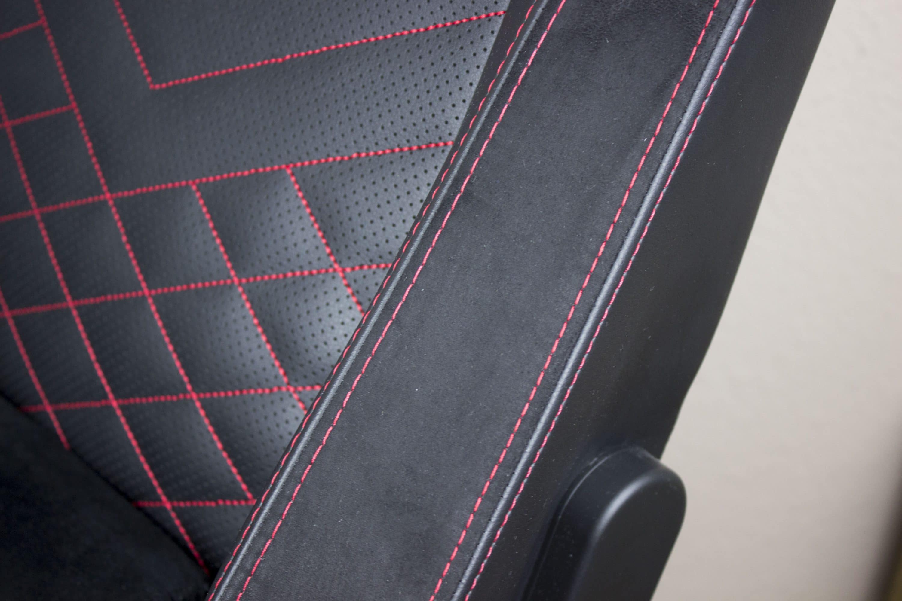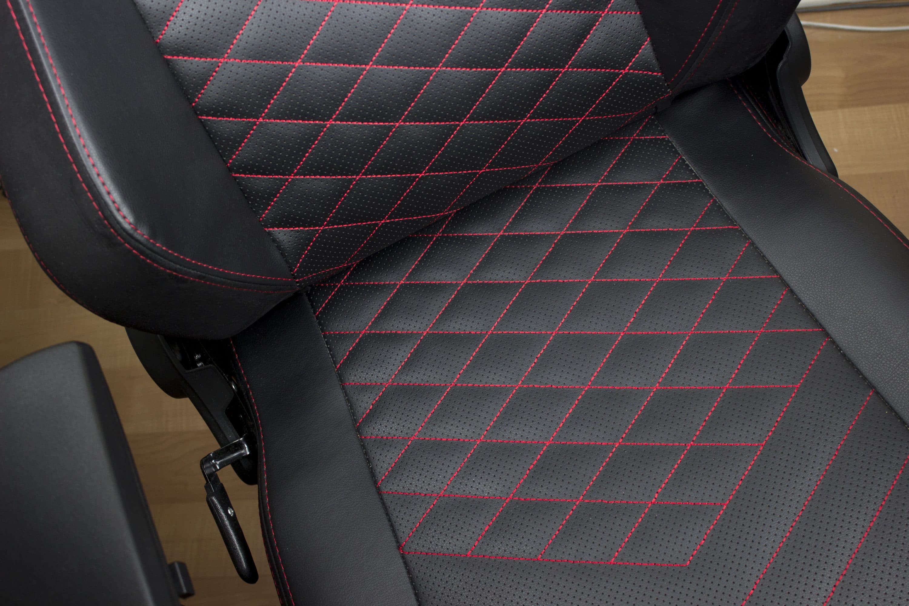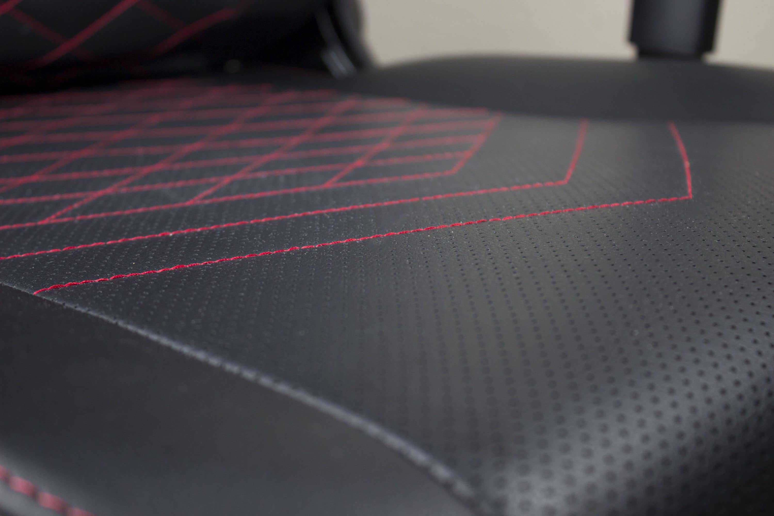 Der gesamte Stuhl wird durch das PU-Kunstleder nochmal mit hervorragend verarbeiteten Nähten in der Farbe Rot aufgewertet. noblechairs‘ Diamant-Muster macht sich auf dem echt wirkendem Leder hervorragend.