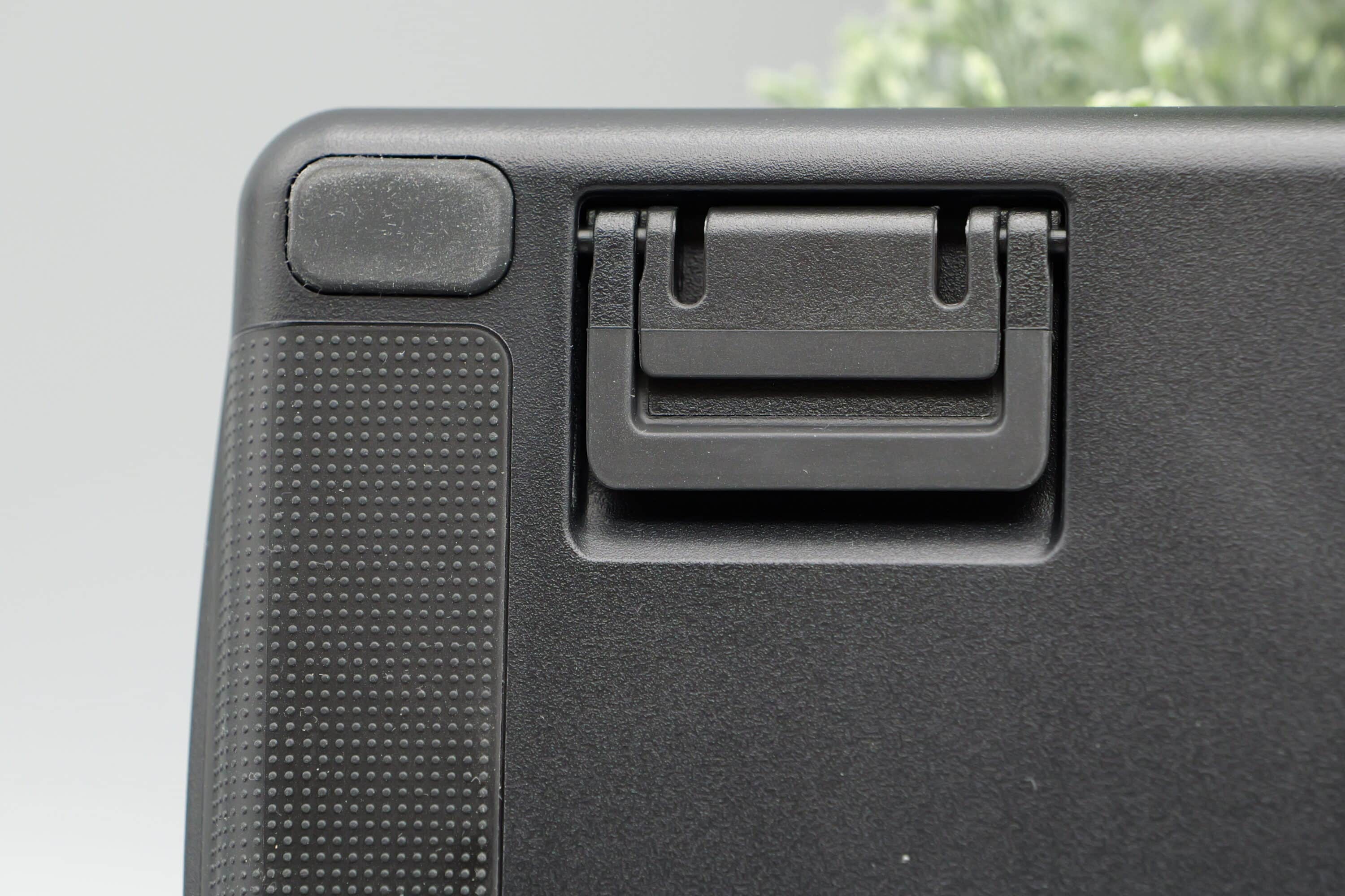 An der Unterseite aus Kunststoff weist das Keyboard nicht nur gummierte Flächen auf, die für sicheren Halt sorgen, sondern setzt auch bei den ausklappbaren Standfüßen auf eine Gummierung. Letztere erlauben das Anwinkeln in insgesamt zwei Stufen (beziehungsweise drei, wenn man die ganz flache dazuzählt).