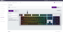 Mit Hinblick auf die Beleuchtung stehen in CAM zahlreiche statische, dynamische und reaktive Effekte zur Verfügung, die mit Hinblick auf ihre Farbe und Geschwindigkeit konfiguriert werden können. Außerdem lassen sich Effekte auch einzeln pro Taste zuweisen, und durch eine zweite Ebene können reaktive Effekte über einen Hintergrundeffekt gelegt werden. Damit bietet CAM bei der Beleuchtung viel Einstellungsspielraum, der kaum Wünsche offen lässt. Außerdem sind auch die RGB-LEDs an sich weitgehend gut umgesetzt: Die Helligkeit und Farbtreue ist auf Augenhöhe mit der Konkurrenz. Nachteilig ist lediglich ein leises Fiepen, das bei hohen Helligkeitsstufen wahrnehmbar ist, wenn man im stillen Raum mit dem Ohr nahe an die Tastatur kommt.