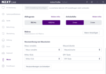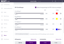 Mit Hinblick auf den Sensor bietet die Lift bis zu vier Profile, die in 100er-Schritten mit einer Auflösung zwischen 100 und 16.000 DPI und einer passenden Signalfarbe belegt werden können. Diese wird von allen LEDs der Maus kurz angezeigt, wenn ein neuer Auflösungswert geladen wird. Darüber hinaus lässt sich beim Sensor noch zweistufig die Abtastrate sowie die Lift-Off-Distanz einstellen. Hier bietet NZXT somit das übliche Paket an Einstellungsspielraum.