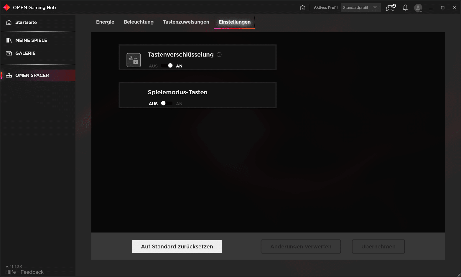 HP OMEN Gaming Hub ist die Software für die Spacer Wireless TKL. Nach dem Start werdet ihr erst einmal überflutet von einer Vielzahl an Werbeanzeigen. Auf der linken Seite sehen wir unsere Tastatur, worüber wir die Einstellungen dieser erreichen.