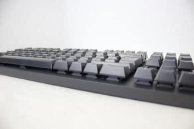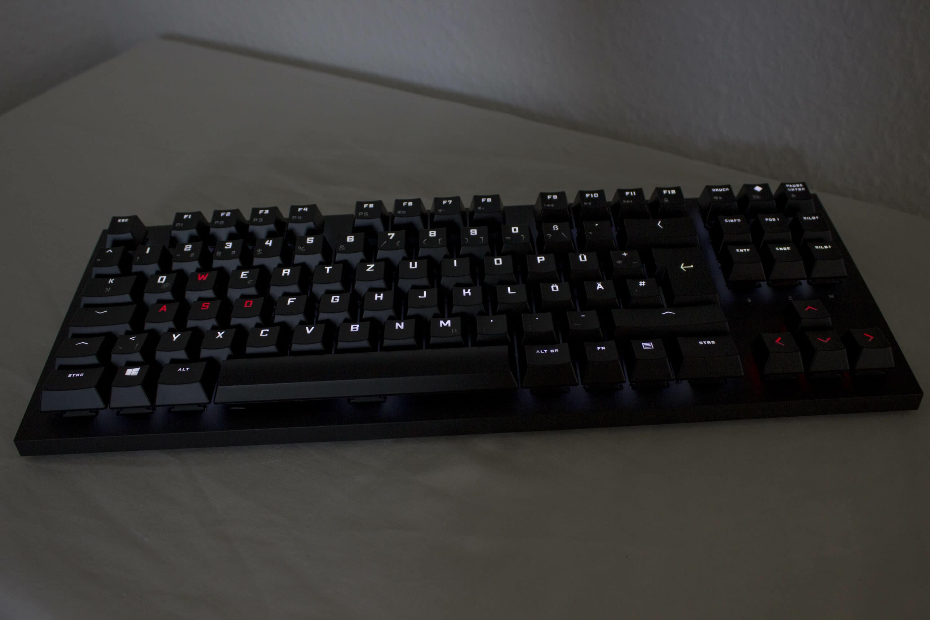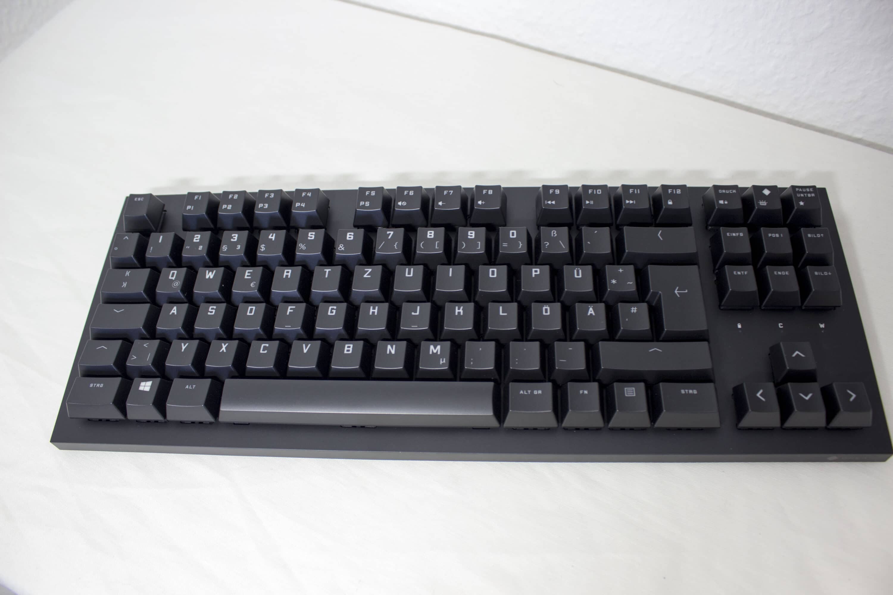 Außerdem sind die Switches für Langlebigkeit ausgelegt. Bis zu 100 Millionen Klicks sollen mit den Cherry MX Brown möglich sein. Zum Tipp-Komfort tragen auch die normalgroßen Tastenkappen bei. Gerade bei TKL Tastaturen werden gerne mal kleinere Kappen verwendet.