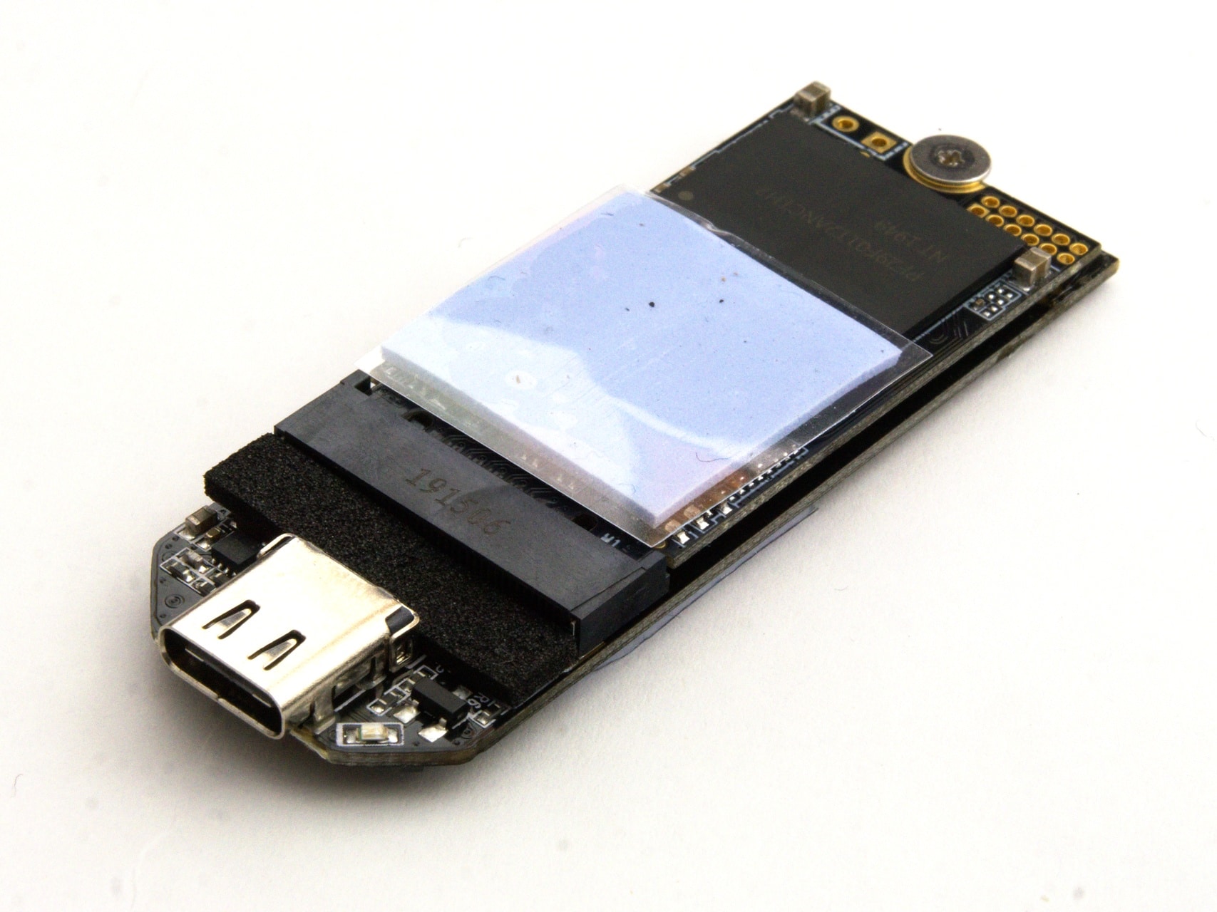 Im Inneren der SSD verbirgt sich ein Träger-PCB, das den PCI-Express-Controller beherbergt. Darüber befindet sich eine handelsübliche M.2-SSD mit dem besagten Silicon Motion SM2263XT als Speichercontroller und dem NAND-Chip. Die beiden Controller werden durch Wärmeleitpads mit der Gehäusewand verbunden, der NAND wird hingegen nicht gekühlt.