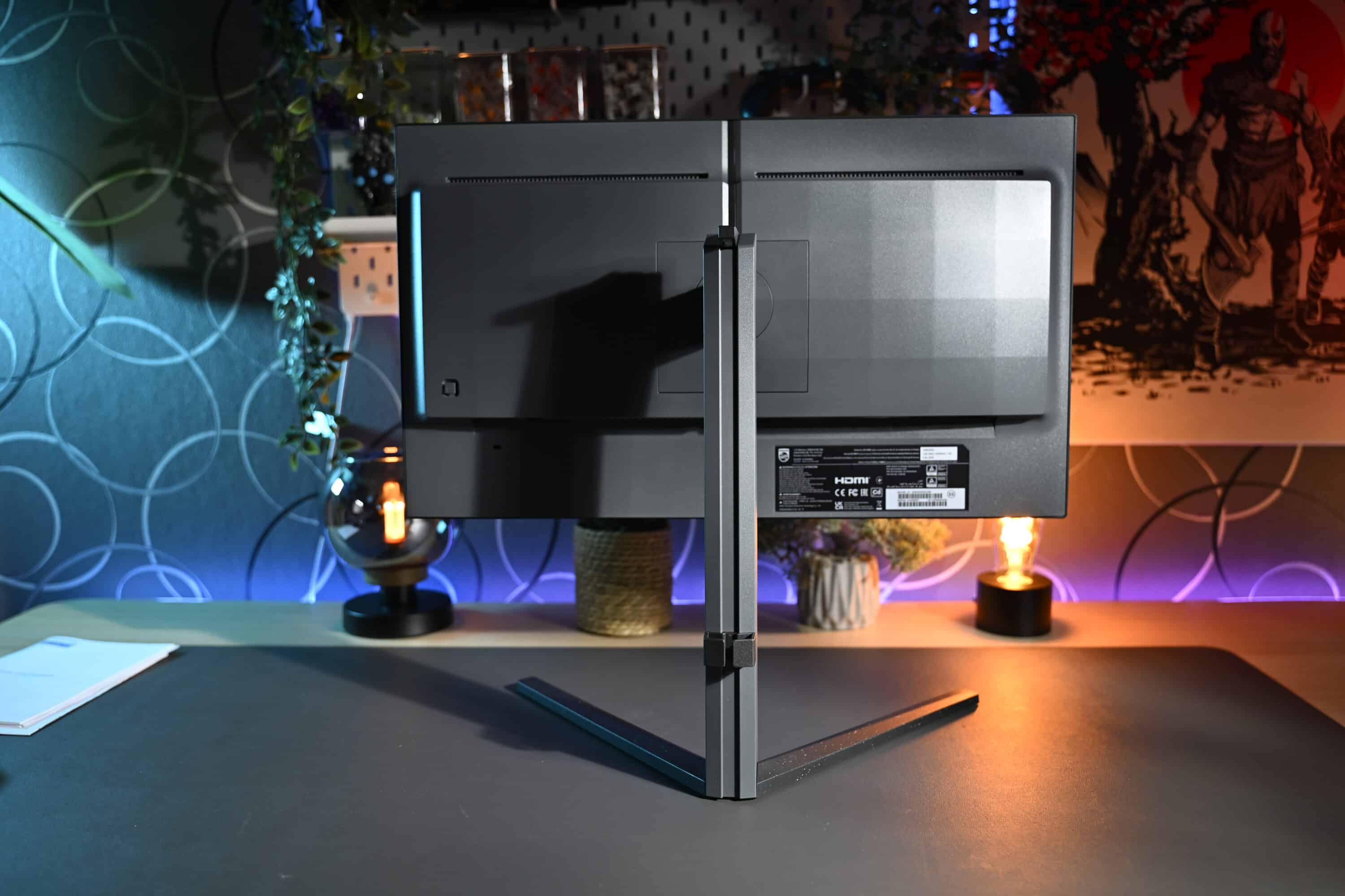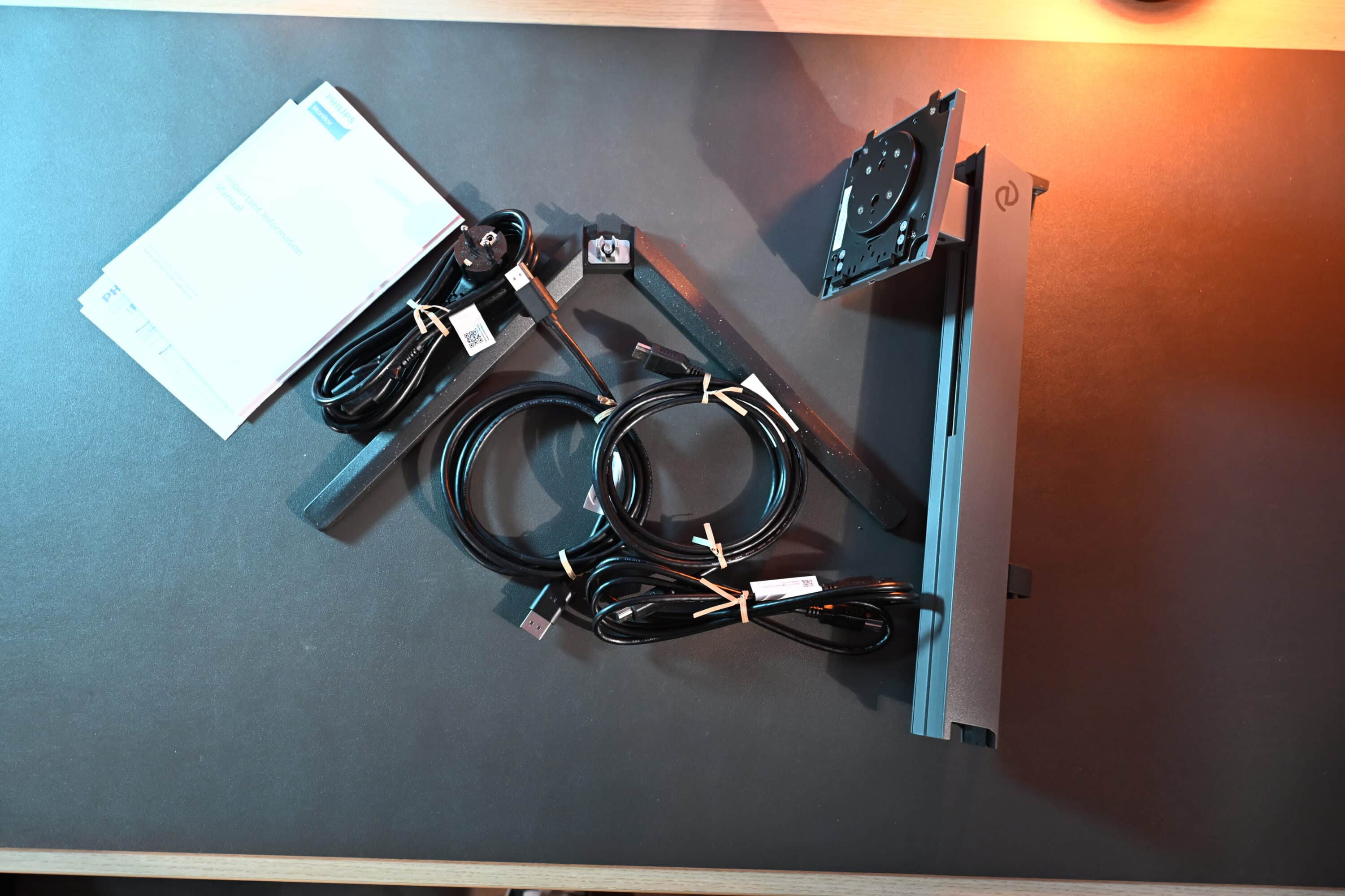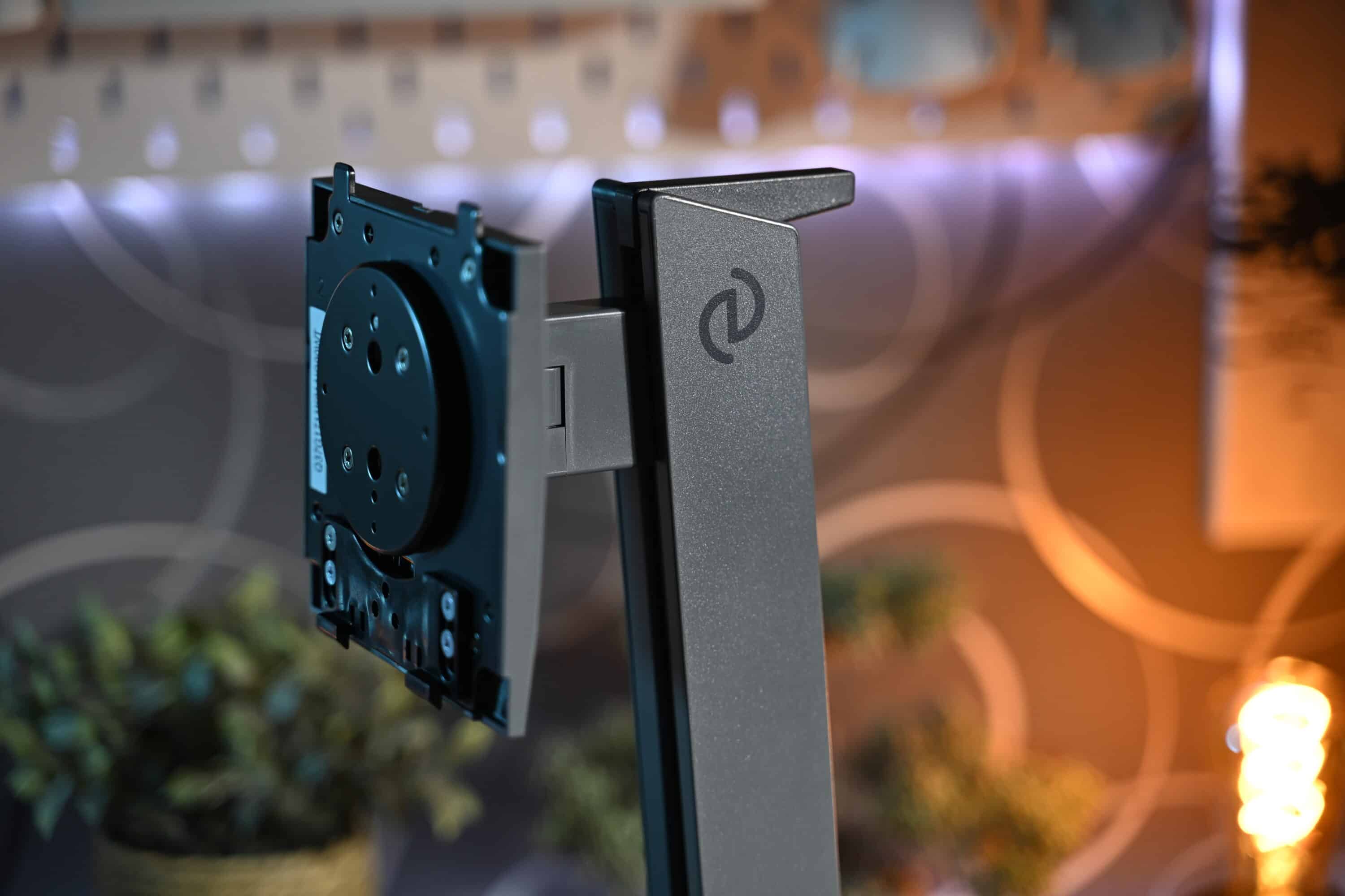 Der Monitor bringt, mit Standfuß, rund 5,09 kg auf die Waage, lässt sich aber auch ohne Standfuß problemlos per VESA-Bohrung an einen Monitorarm anbringen. Hier liegt das Gewicht bei angenehmen 3,39 kg ohne Standfuß. Der Standfuß bietet an der Rückseite eine dezente Headset-Halterung und ein simples Kabelmanagement-System.