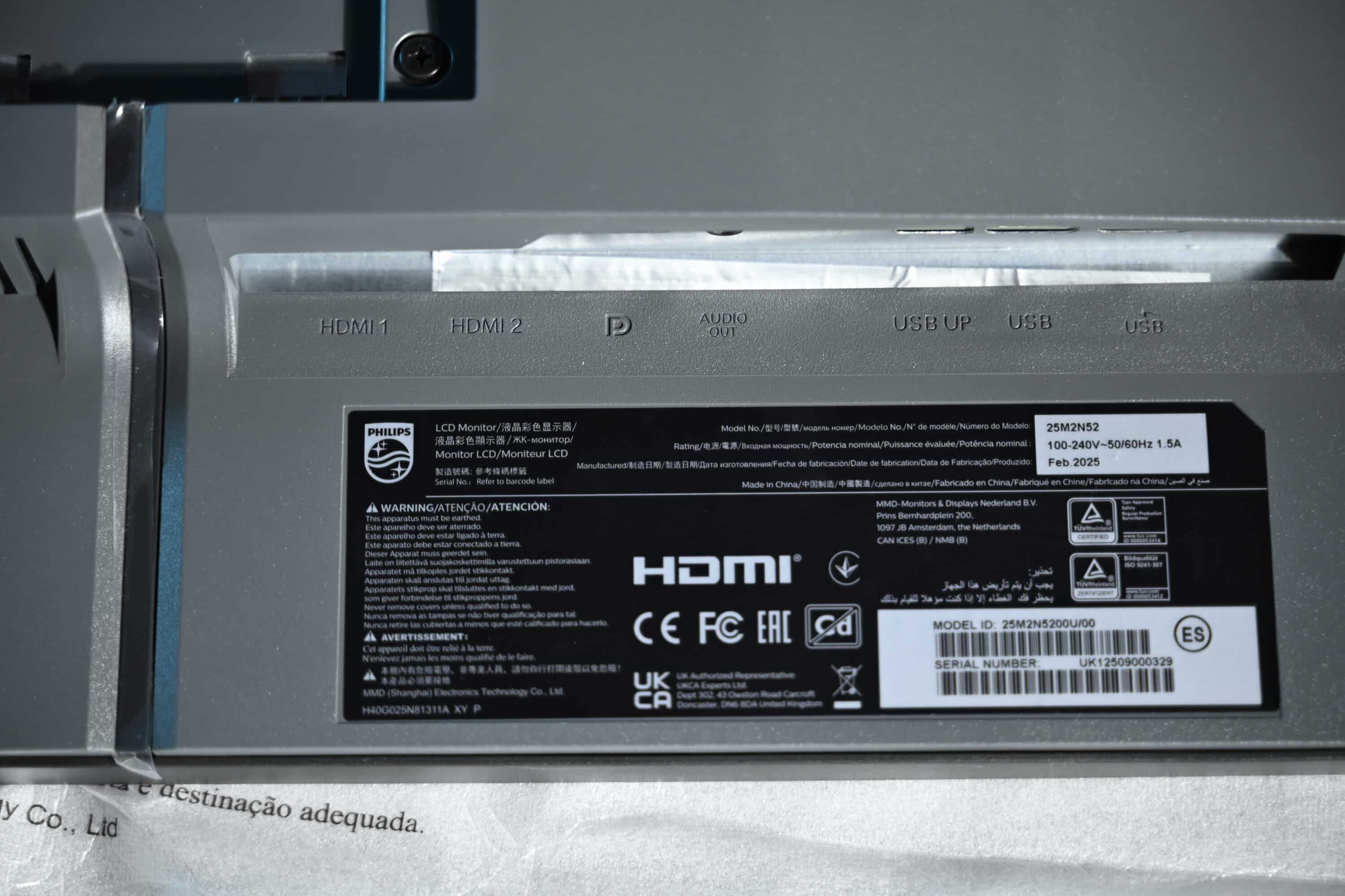 In Sachen Konnektivität bietet der Philips Evnia 25M2N5200U alles, was Gamer erwarten: Zwei HDMI-2.0-Anschlüsse, ein DisplayPort 1.4 sowie ein integrierter USB-Hub (4x USB-A, 1x USB-B up) ermöglichen eine schnelle Verbindung zu Konsole, PC und Peripheriegeräten. Per HDMI sind dabei maximal Bildraten von 240 Hz möglich, via DisplayPort gibt es dann die vollen 390 Hz.