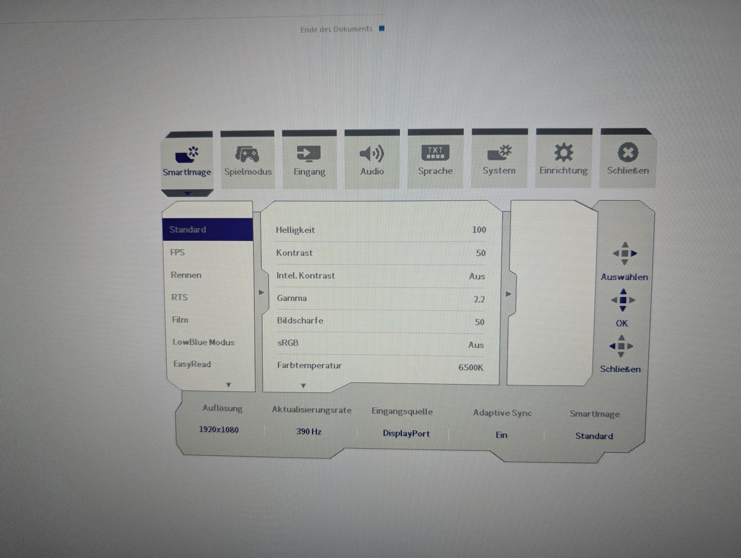 Auf dem schnellsten Overdrive-Setting nimmt die Bildqualität allerdings merklich ab, der Sweetsport liegen in meinen Augen bei „Fast“ beziehungsweise „Schnell“, das den besten Kompromiss aus Geschwindigkeit und Bildqualität liefert. Die besten Ergebnisse erzielt der Monitor zudem, wenn du die Bildrate auf 240 Hz – 300 Hz festlegst.