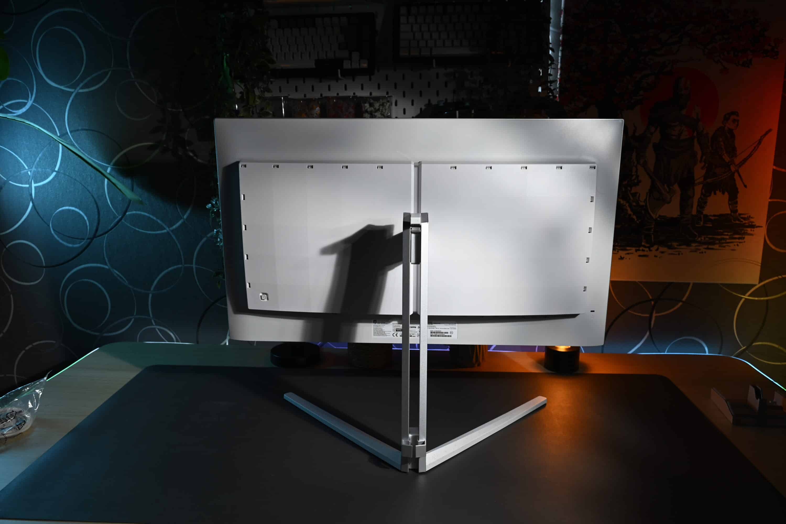 Das sieht nicht nur richtig cool aus, sondern zieht dich auch deutlich tiefer ins Geschehen hinein. Besonders, wenn die LEDs eine Fläche hinter dem Monitor anstrahlen können. Das Ganze lässt sich nur schwer in Fotos festhalten, bietet aber beim Zocken oder Anschauen von Inhalten einen echten Mehrwert.