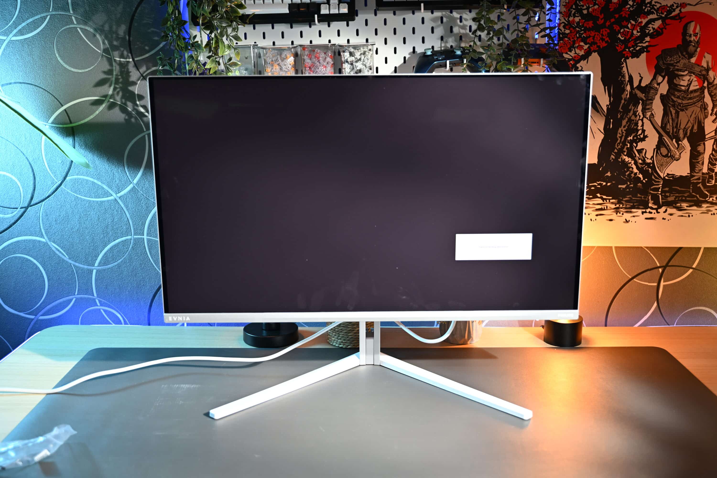 Damit passt der Monitor natürlich perfekt in weiße, helle Gaming-Setups. Das grundlegende Design erinnert dabei, vom Aufbau her, dann den (schwarzen) Evnia 34M2C6500, den wir im November 2024 bereits testen konnten.