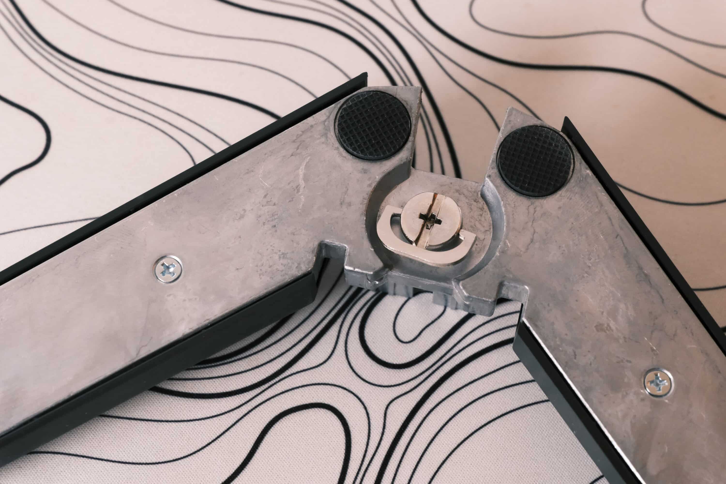 Der Standfuß wartet dabei mit einer recht schicken gesprenkelten Oberfläche auf, wirkt allerdings recht dünn und wacklig. In der Praxis gibt es aber nichts zu beanstanden: Der PHILIPS Evnia 34M2C6500 steht sicher dank gummierter Noppen auf dem Schreibtisch, allerdings wackelt der Monitor bei Berührungen doch recht stark nach – besorgniserregend ist das allerdings nicht.