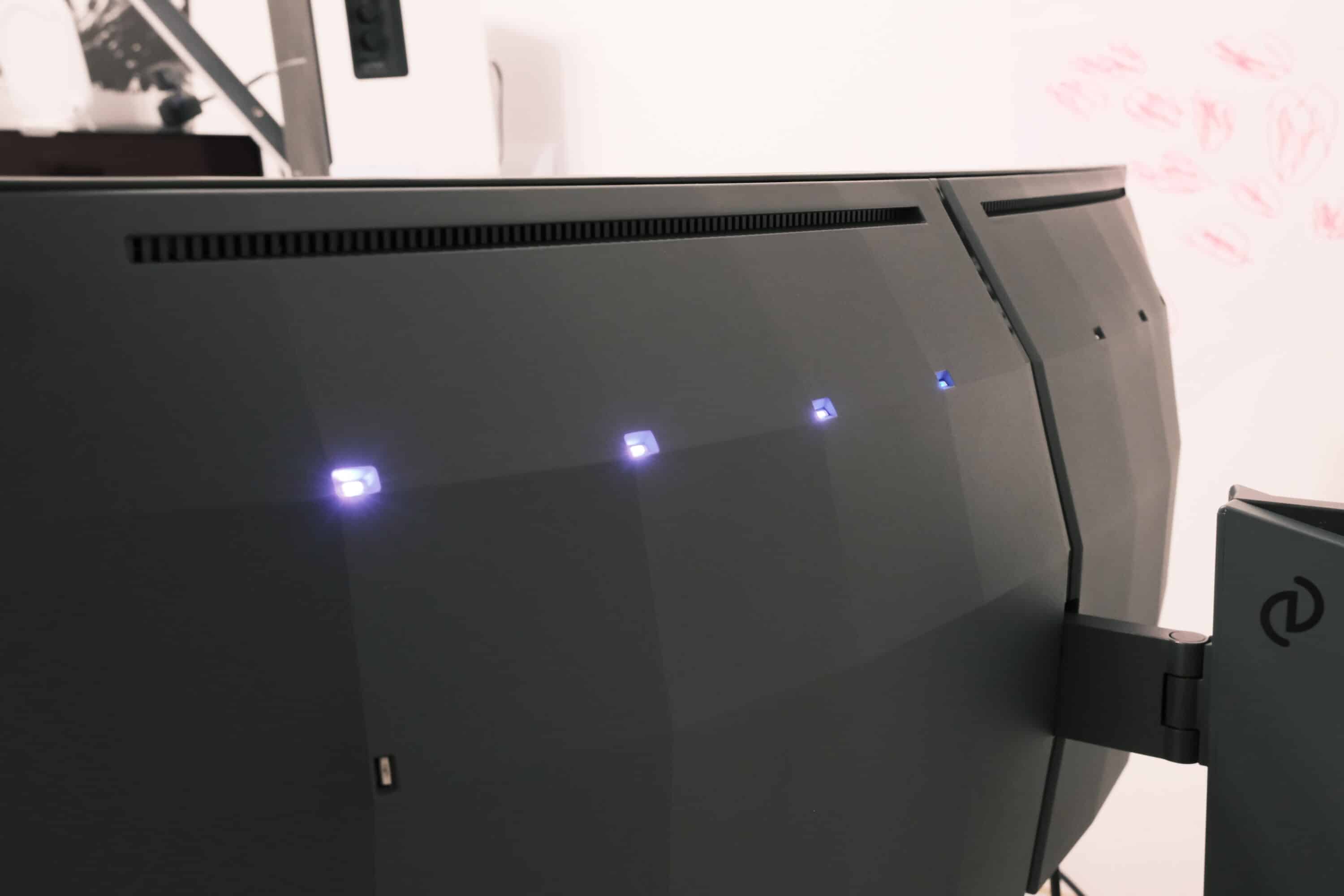 Spannend wird es an der Rückseite, denn hier kommt die Hersteller-typische Ambiglow-Beleuchtung zum Einsatz. gesamt 14 LEDs findet ihr hier über die gesamte Rückseite verteilt, die beispielsweise in verschiedenen Effekten erstrahlen können. Dank des integrierten KI-gestützten Prozessors werden aber auch die Inhalte, die auf dem Display angezeigt werden, analysiert und die Beleuchtung passt sich entsprechend der dargestellten Bildinhalte an. Ein cooles Feature das, je nach Standort des Monitors, die Immersion verbessert.