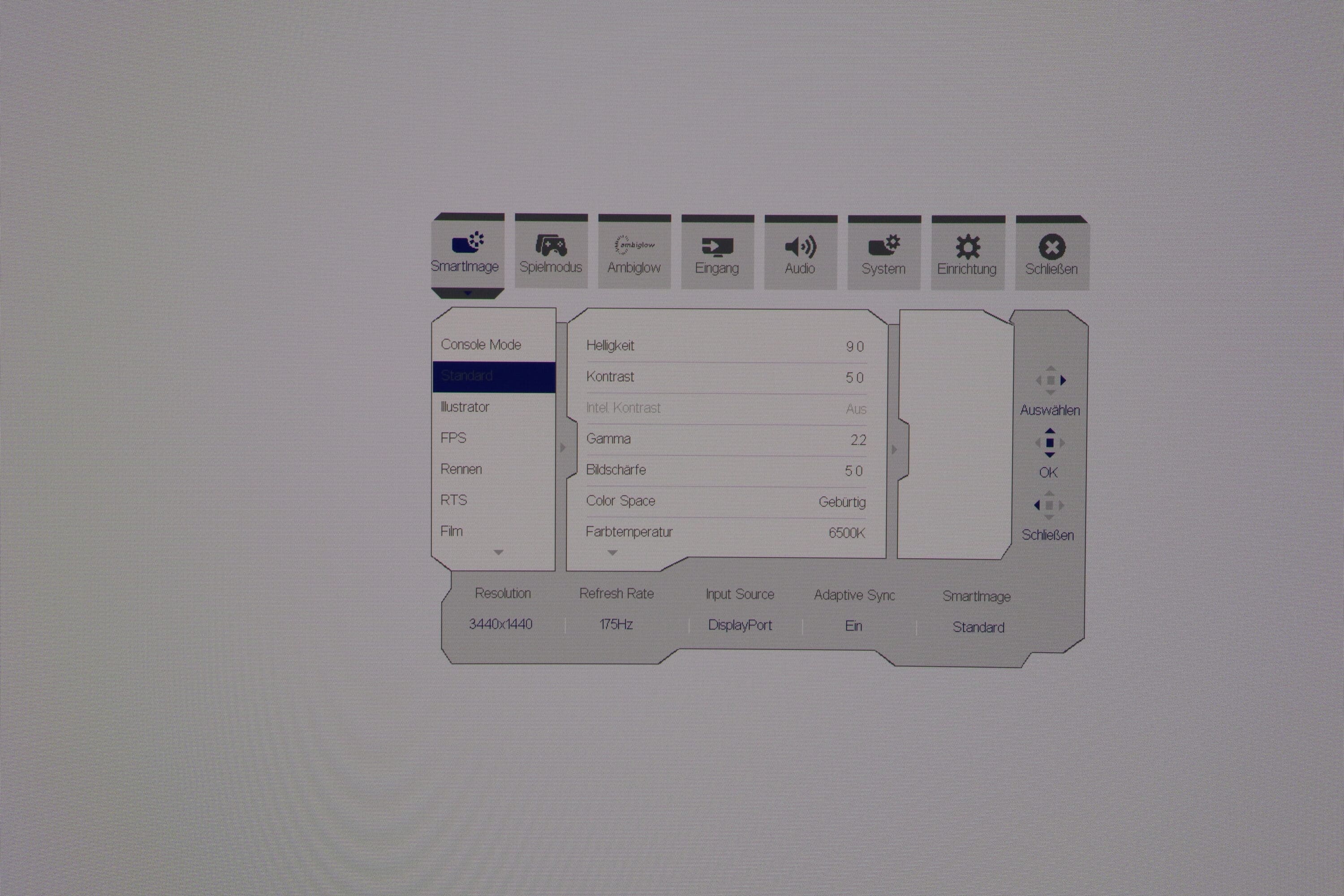 Wie alle Monitore, musste sich auch der PHILIPS Evnia 34M2C6500 im Labor beweisen. Dafür habe ich den Monitor zunächst auf die Werkseinstellungen zurückgesetzt. Wer sich also etwas durch die Menüs hangelt, kann hinsichtlich der Bildqualität noch ein paar Optimierungen vornehmen.