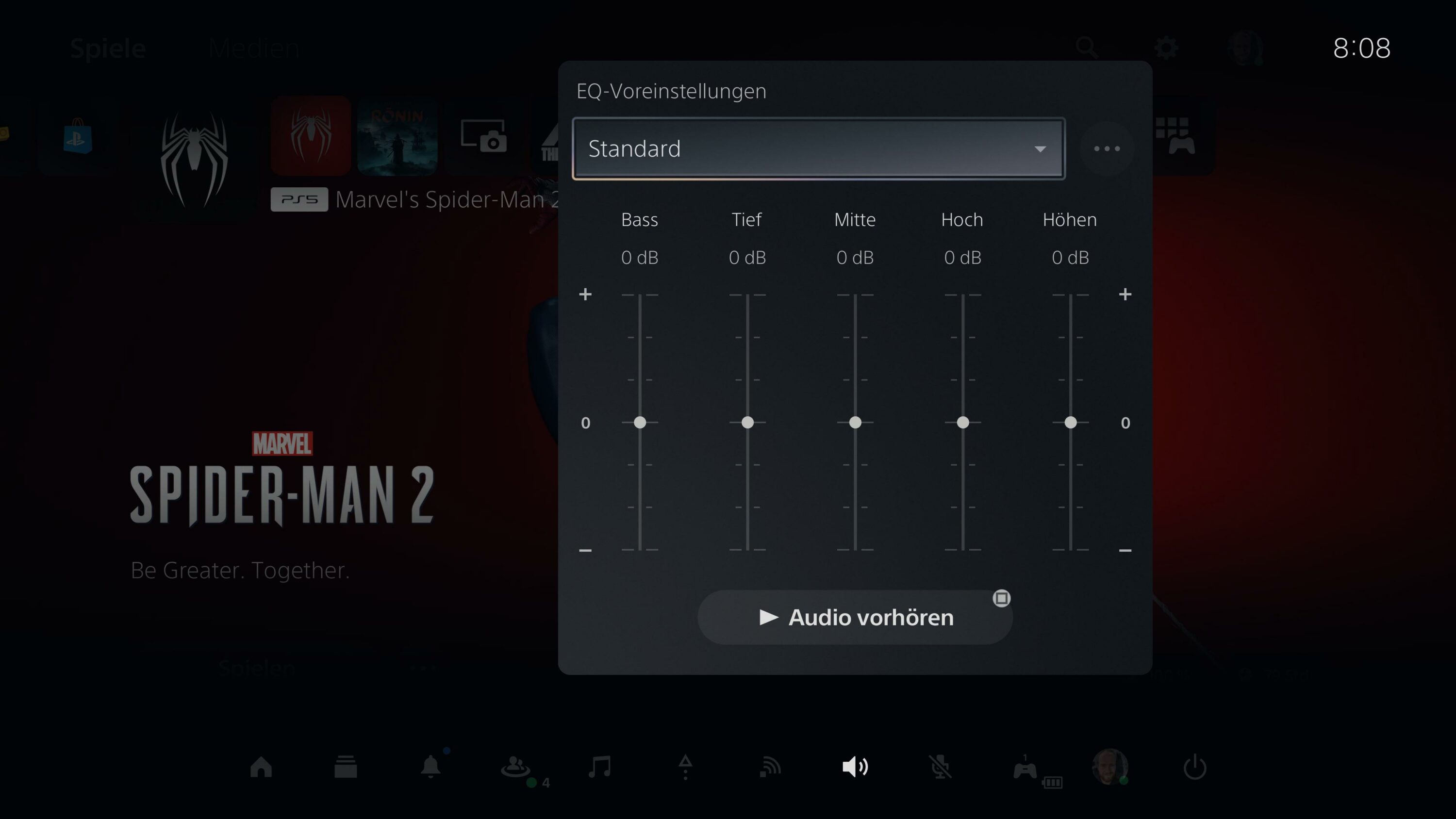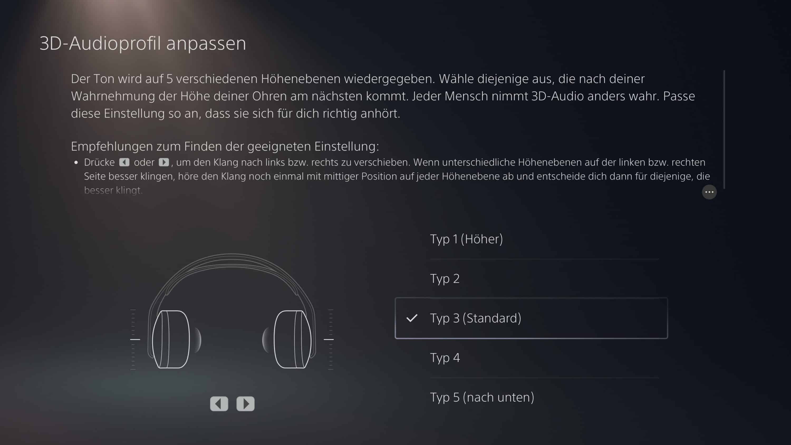 In Verbindung mit der PlayStation 5 (und PS5 Slim) öffnet ein dreimaliges Antippen der Power/Pairing-Taste zudem das Equalizer-Menü der Konsole, in dem du den Klang individualisieren kannst.