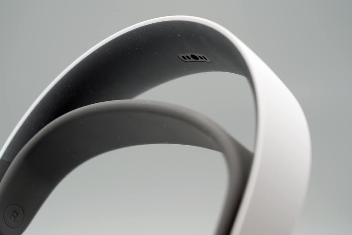 Er verfügt zudem an der Innenseite über einen Mute-Knopf samt orangefarbener Status-LED. Ungewohnte Position, aber äußerst praktisch. Wobei die Stummschaltung auch über den Mute-Knopf des DualSense-Controllers möglich ist.
